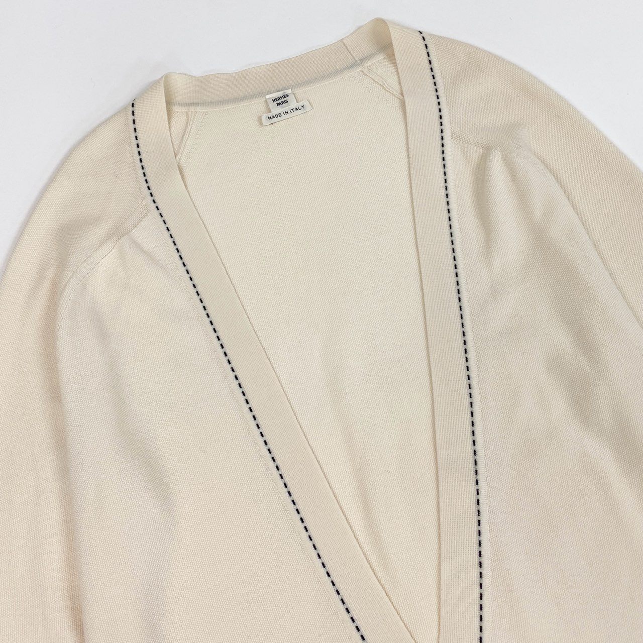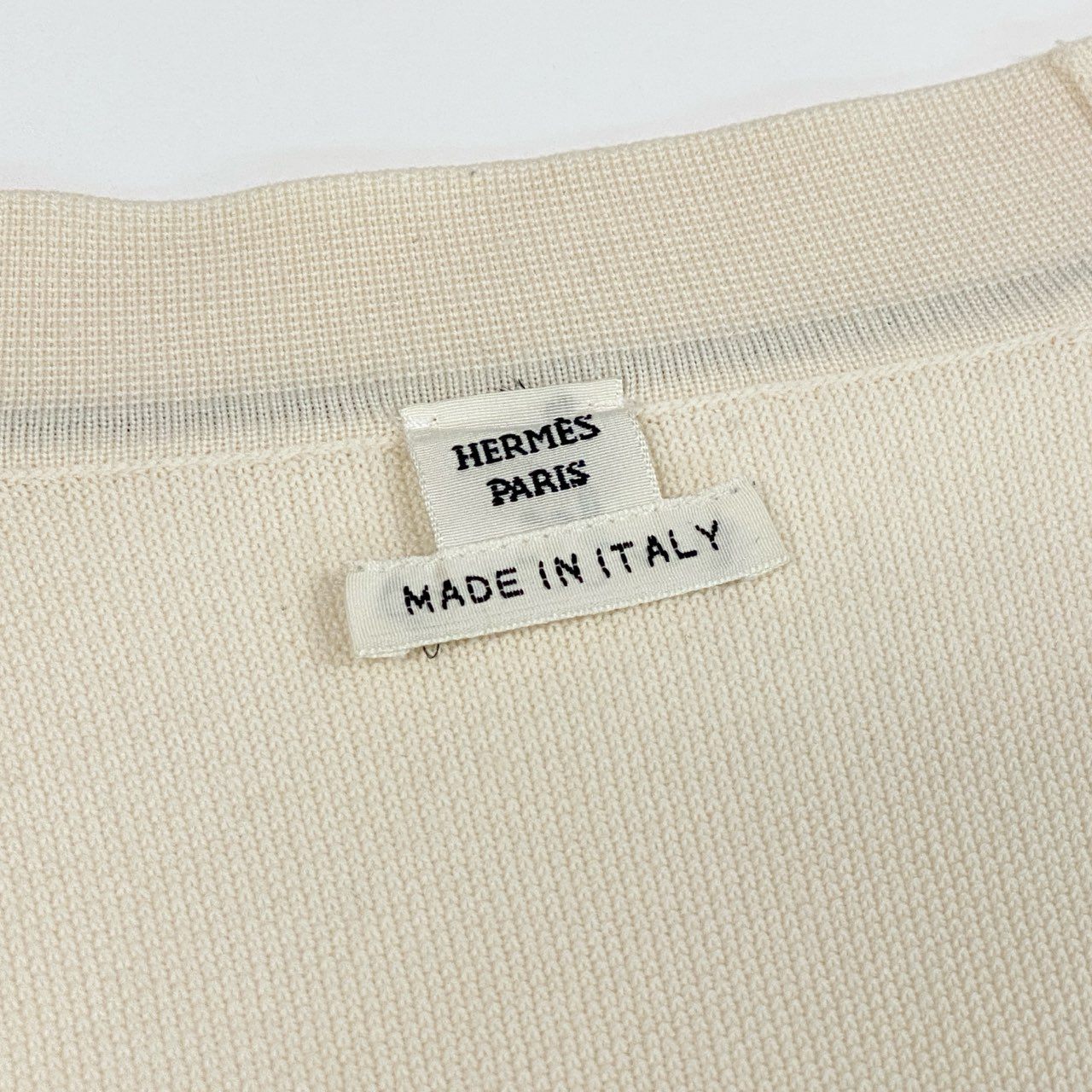 Ea26 HERMES エルメス ニットセーター カーディガン トップス ロゴプレート ステッチデザイン イタリア製 38サイズ アイボリー ウール100% レディースo07t