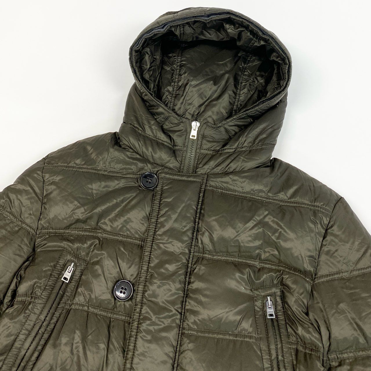 HERNO(ヘルノ)らしい上品さと機能性を兼ね備えた、フーデットダウンコートです。カラーは落ち着いたダークブラウン寄りのカーキブラウンで、艶を抑えたナイロン素材が洗練された印象を演出します。軽量ながらしっかりとしたボリューム感のあるダウンで、防寒性も高くデイリー使いに最適。ダブルジップ仕様により着こなしの調整がしやすく、通勤・旅行・タウンユースまで幅広いシーンで活躍する一着です。
