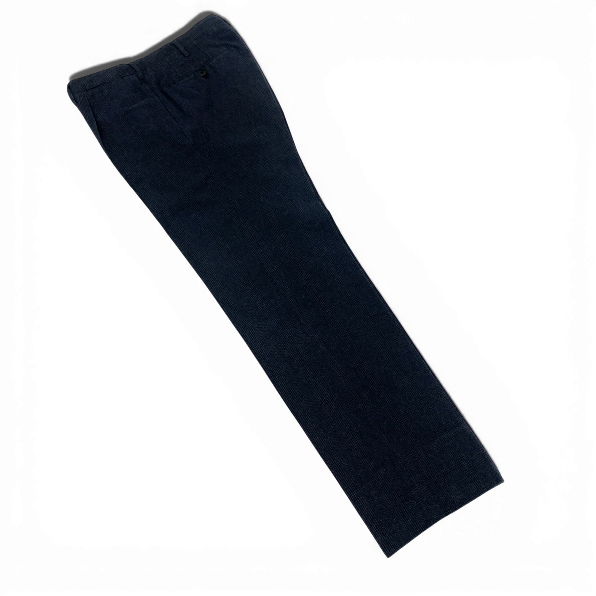 落ち着いたミッドナイトネイビーに、控えめなグレンチェック柄が上品なテーパードパンツです。マットなウール系素材感で、季節感と品格を両立。センタープレスが脚線を美しく見せ、ジャケットからニットまで幅広く対応します。オンオフ兼用で使いやすく、仕立ての良さが光る**Rota**らしい一本です。