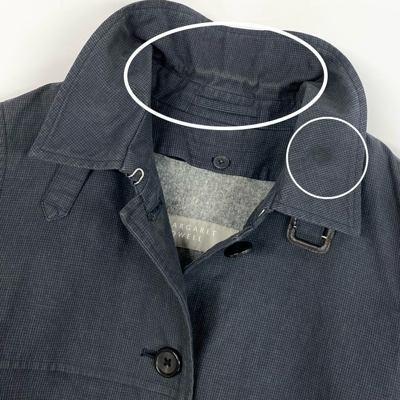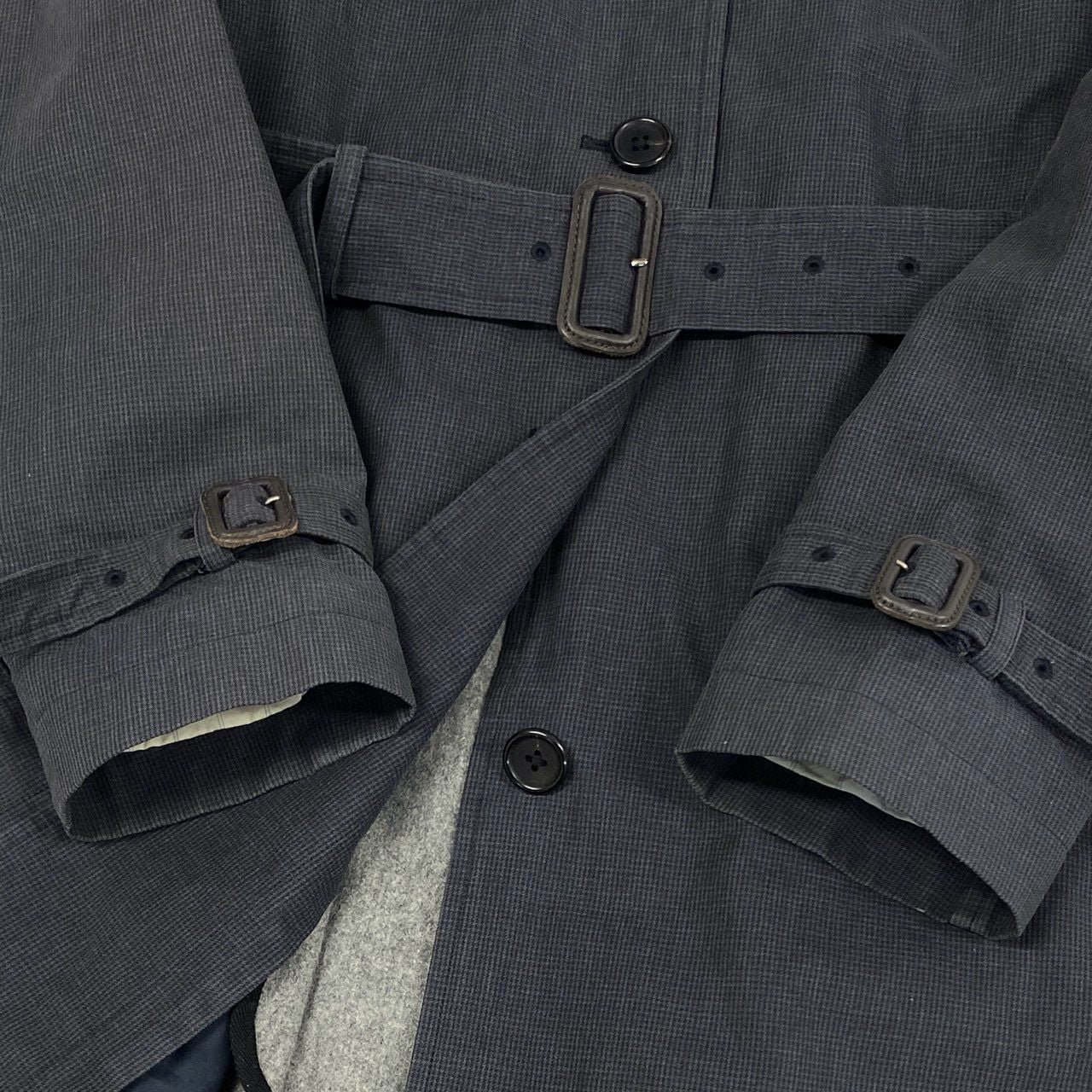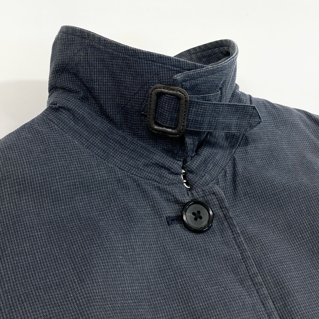 マーガレットハウエルの「578-212904」ショートトレンチコート。上品なミッドナイトネイビーのマットなコットン素材を使用し、自然なハリ感と落ち着いた光沢が特徴です。ベルト付きのウエストと袖口のバックルがクラシックなアクセントとなり、オンオフ問わず着回しやすいデザイン。ライナー着脱式でロングシーズン活躍し、タイムレスな上質さを感じさせる一着です。