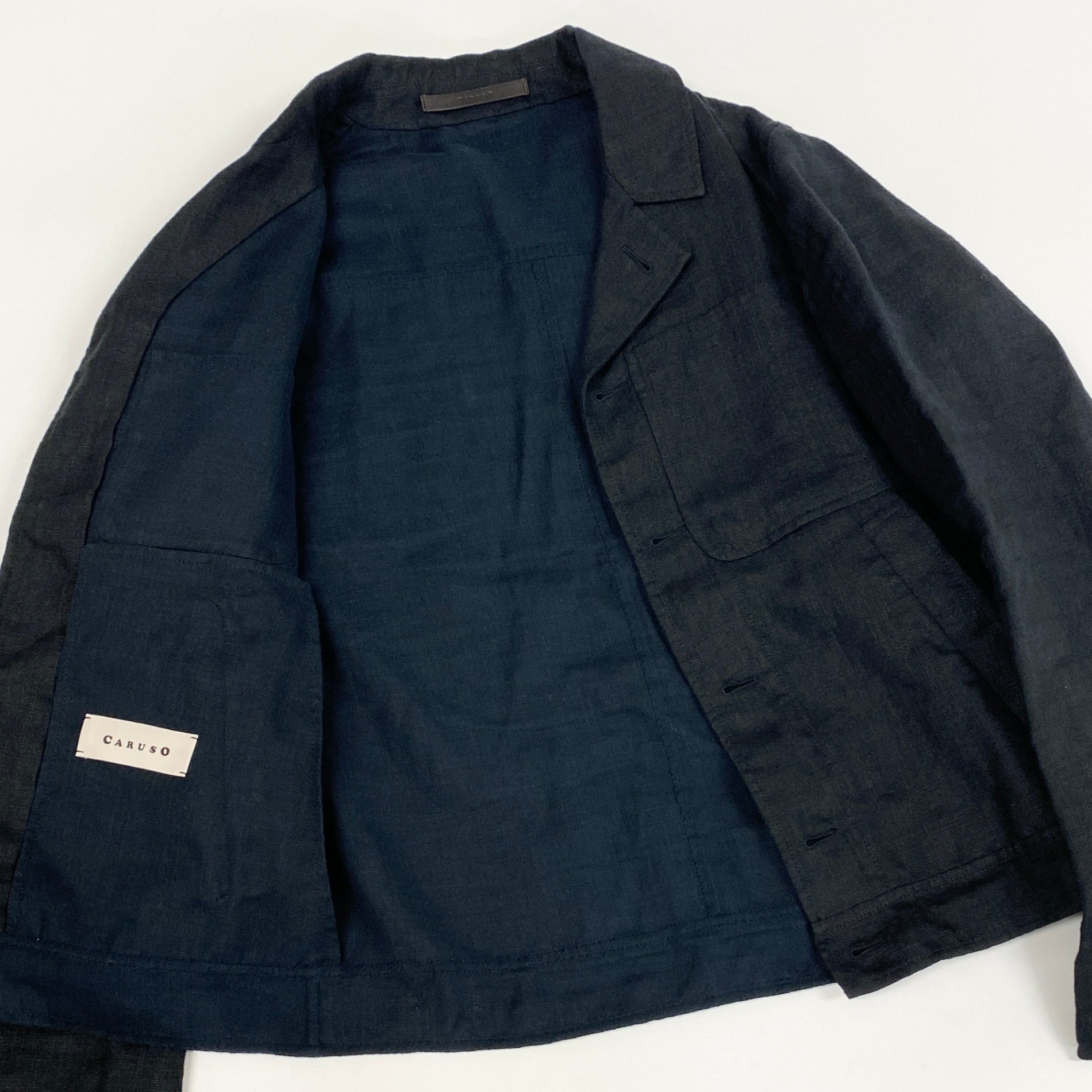 29k6【美品】CARUSO カルーソー コットンリネンワークブルゾン ジャケット アウター VMD504 42Rサイズ ブラック メンズu02t