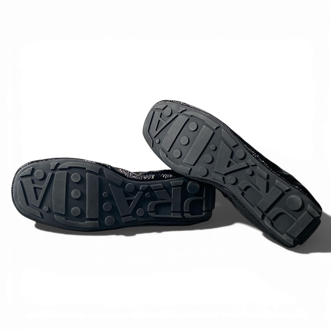 c17 【美品】PRADA プラダ ナプラップパテントレザー バレリーナ バレエシューズ サイズ37 ブラック レディースk02i