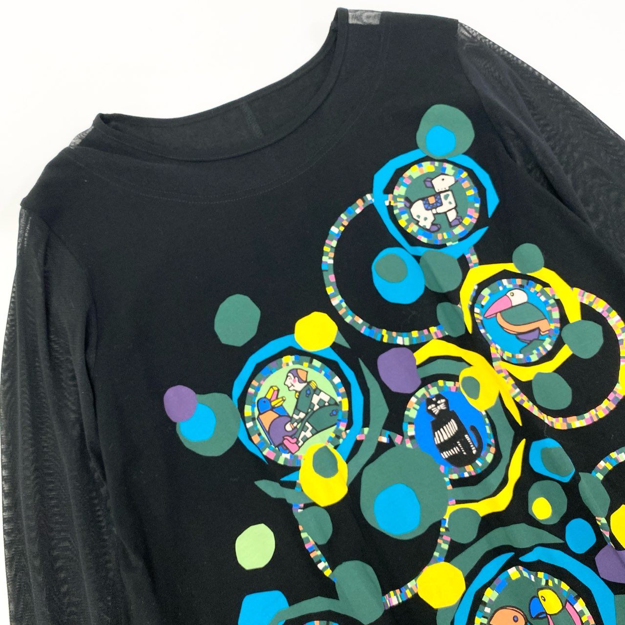 26k27 《美品》 TOKUKO 1er VOL トクコプルミエヴォル チュニックワンピース シアースリーブ アニマルプリント レディース 女性用 9 ブラックu02t