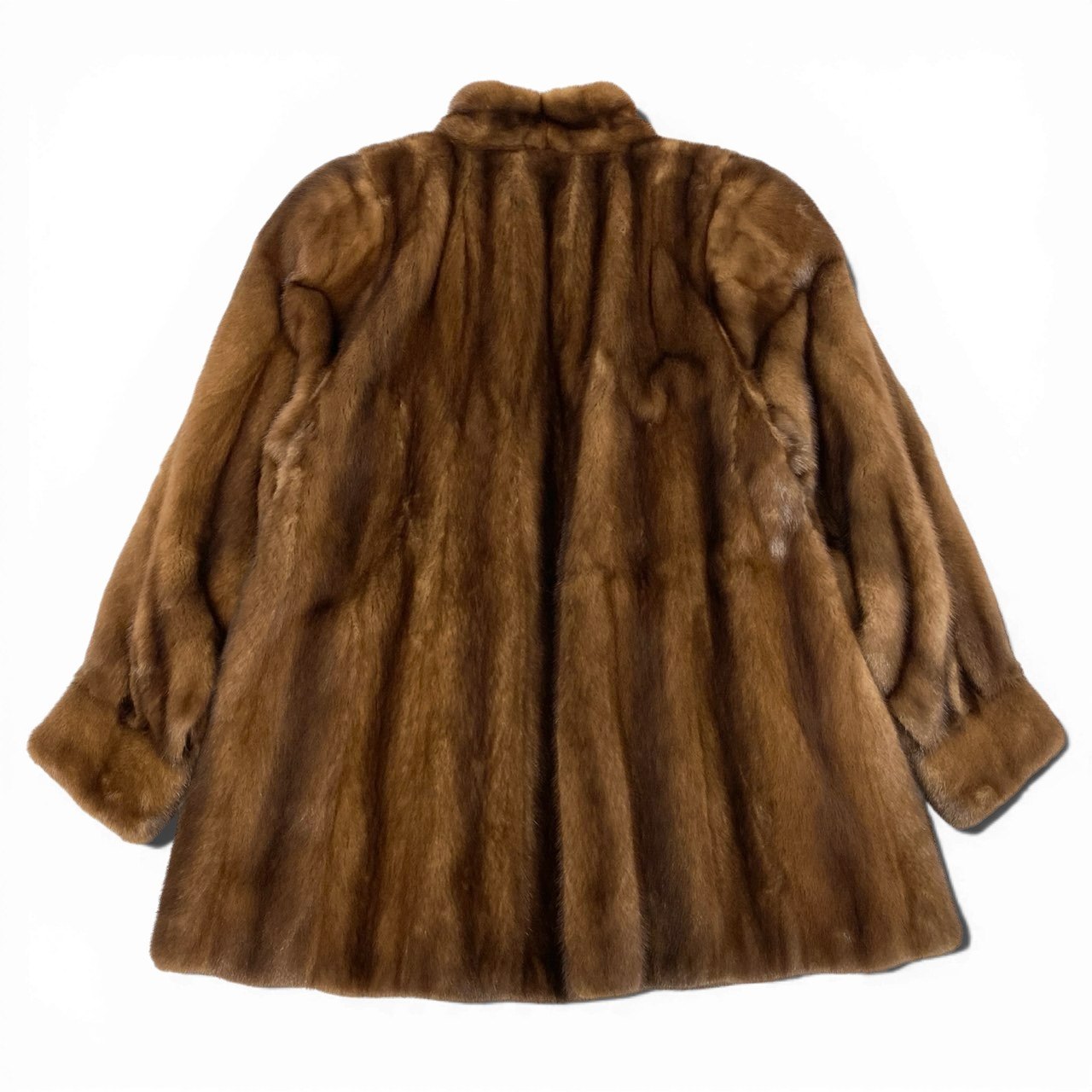 上質な毛皮として評価の高い銀サガ(SAGA MINK)のデミバフミンクを使用した毛皮コートです。深みのあるブラウン系カラーに、自然な濃淡と美しい毛並みが際立ちます。毛足はなめらかで艶があり、ボリューム感がありながら上品な印象。エレガントな外出や特別なシーンに、存在感と高級感を兼ね備えた一着です。