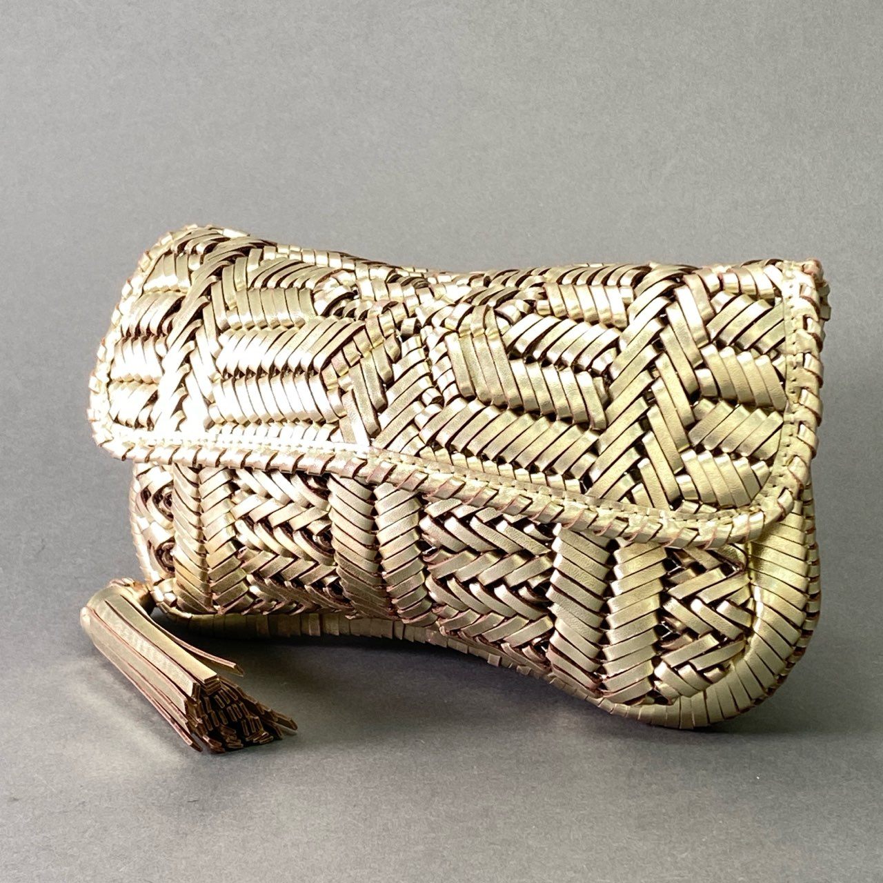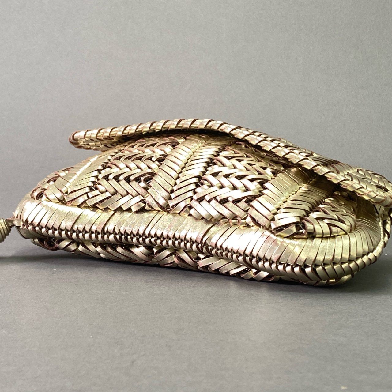 Dl9 ANYA HINDMARCH アニヤハインドマーチ 編み込み クラッチバッグ ゴールド レザー 結婚式 セレモニー パーティ ポーチ カバン