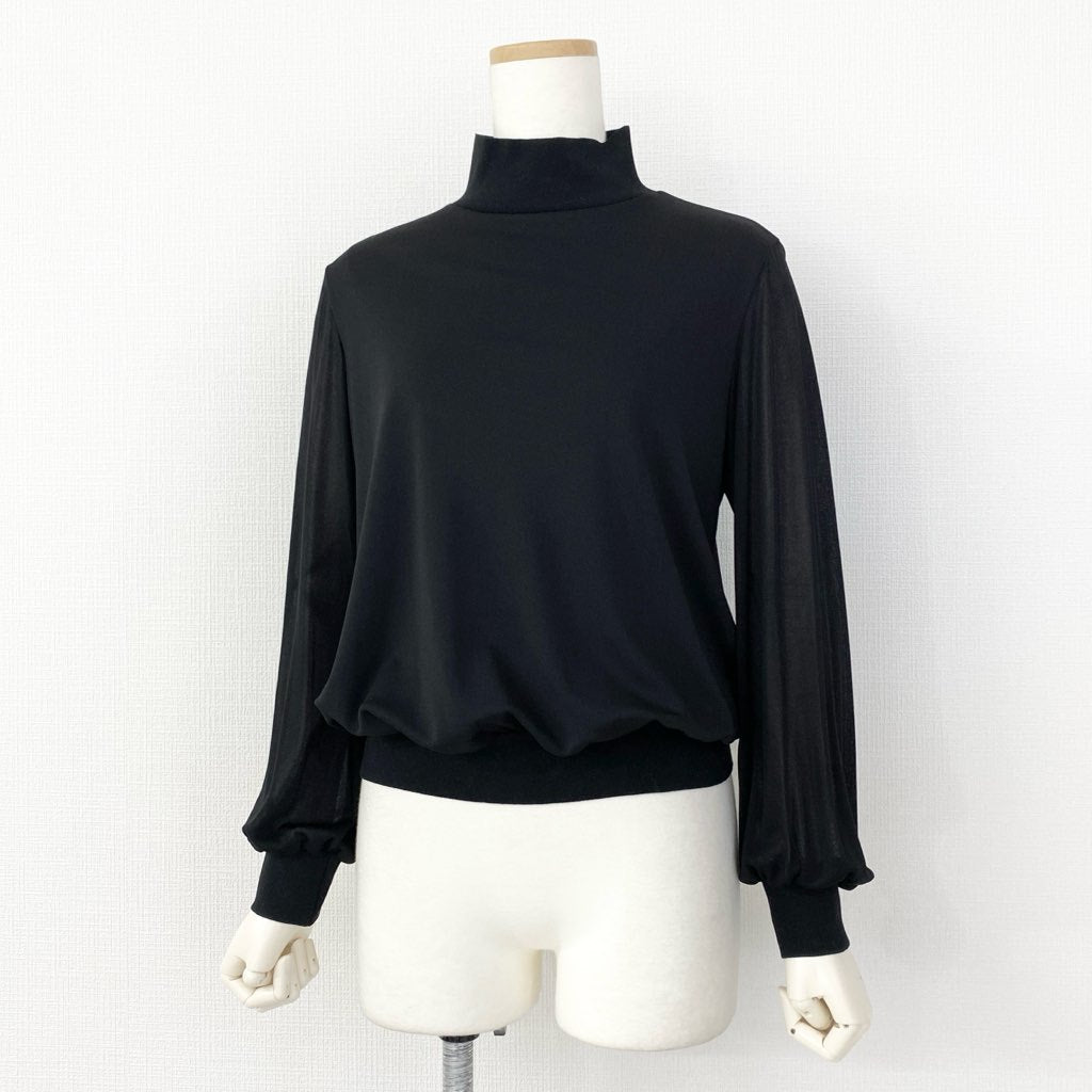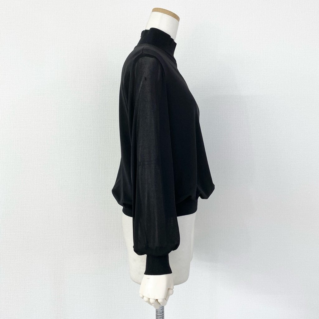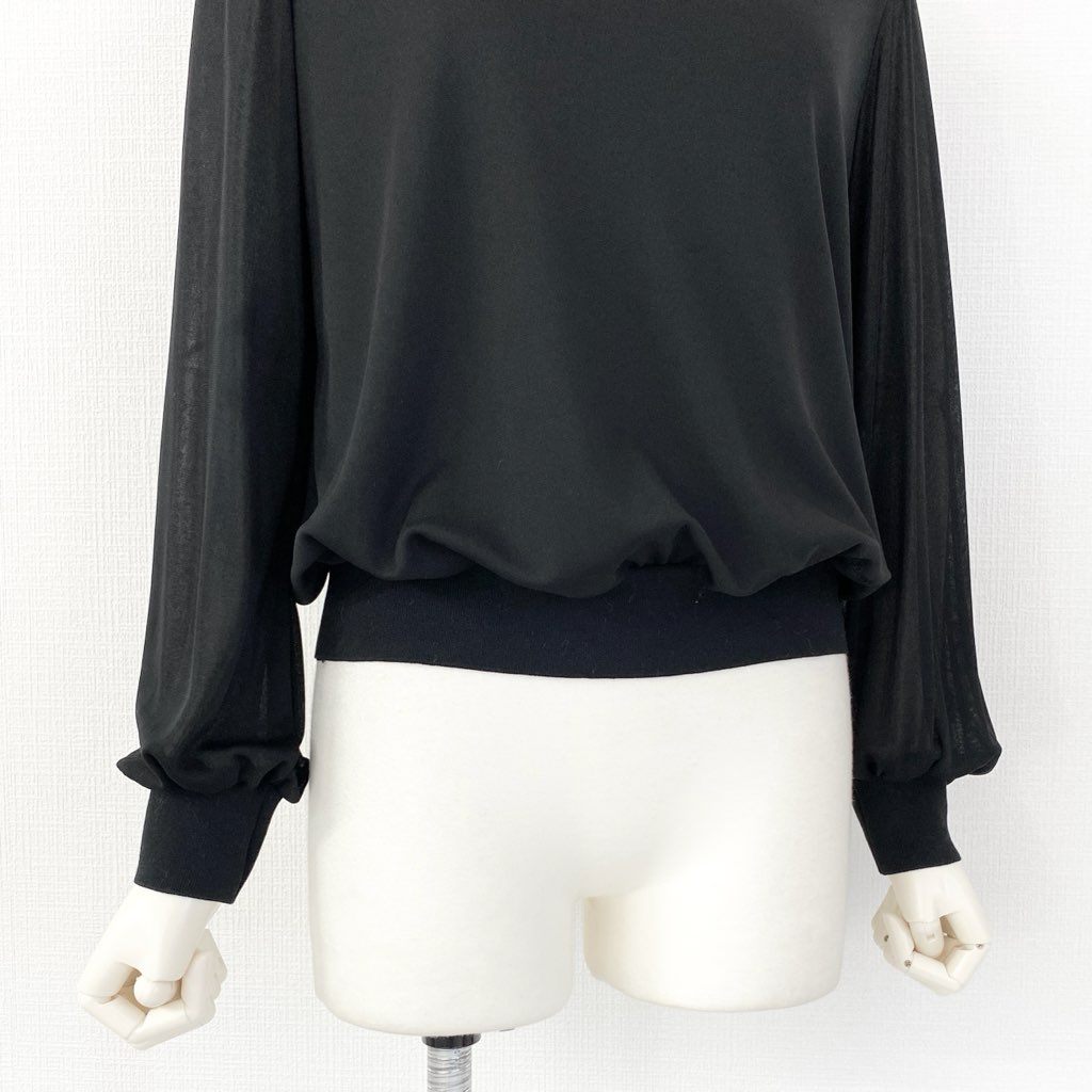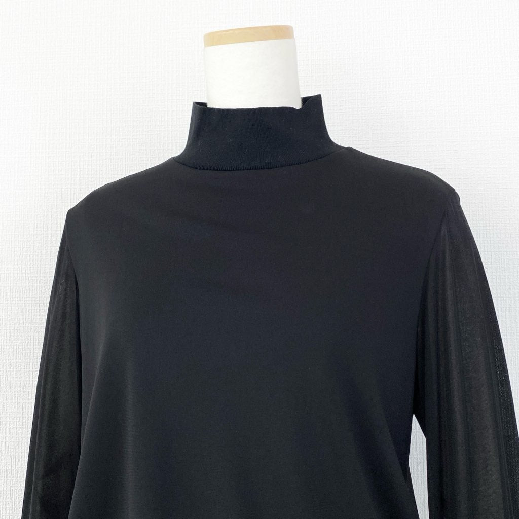 59e20 LEONARD レオナール カンカン素材 長袖Tシャツ ロングスリーブカットソー トップス サイズM ブラック トリアセテート65 ポリエステル35 レディース 日本製