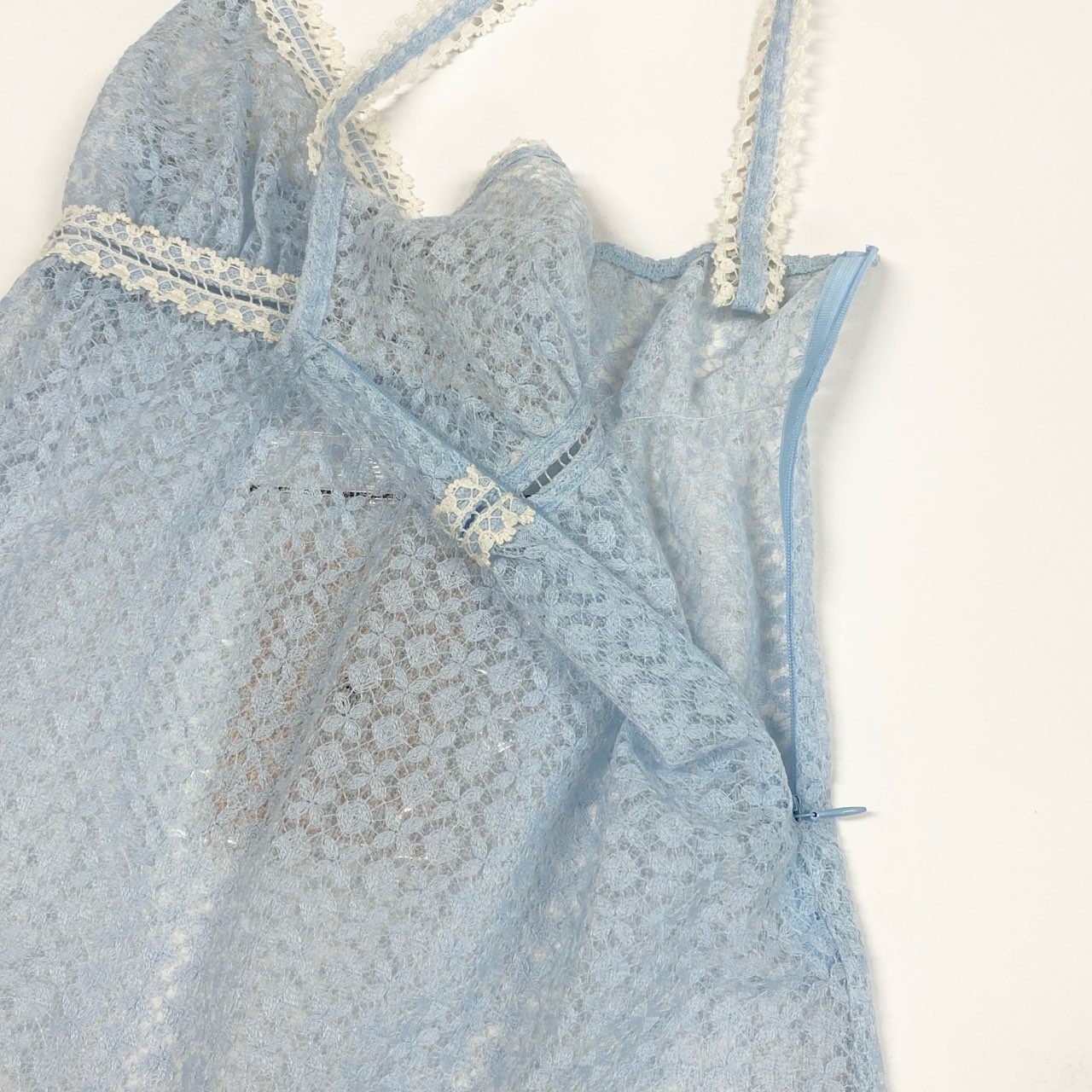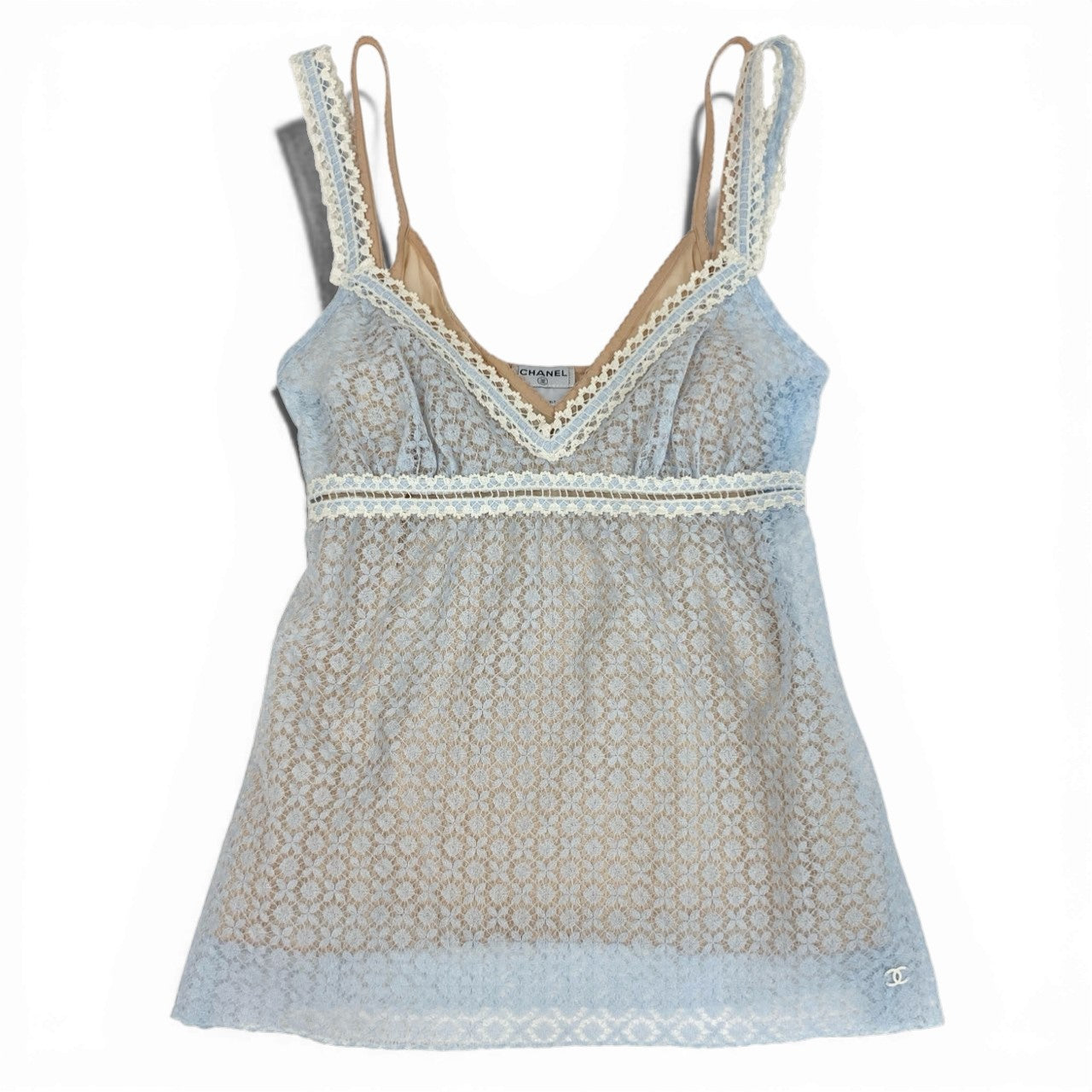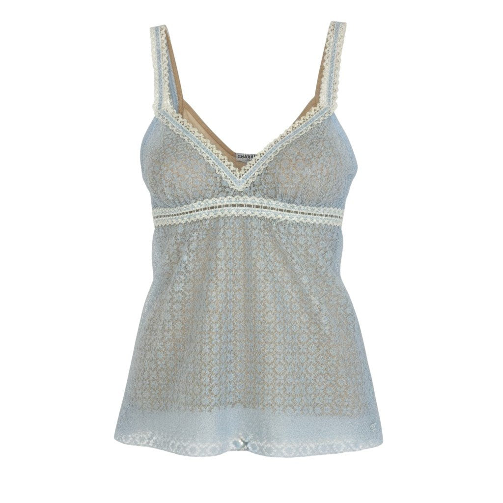 Cb15 《極美品》 CHANEL シャネル 2007 総レース キャミソール トップス タンクトップ P30616 36 ライトブルー 画像参照 レディースk02i
