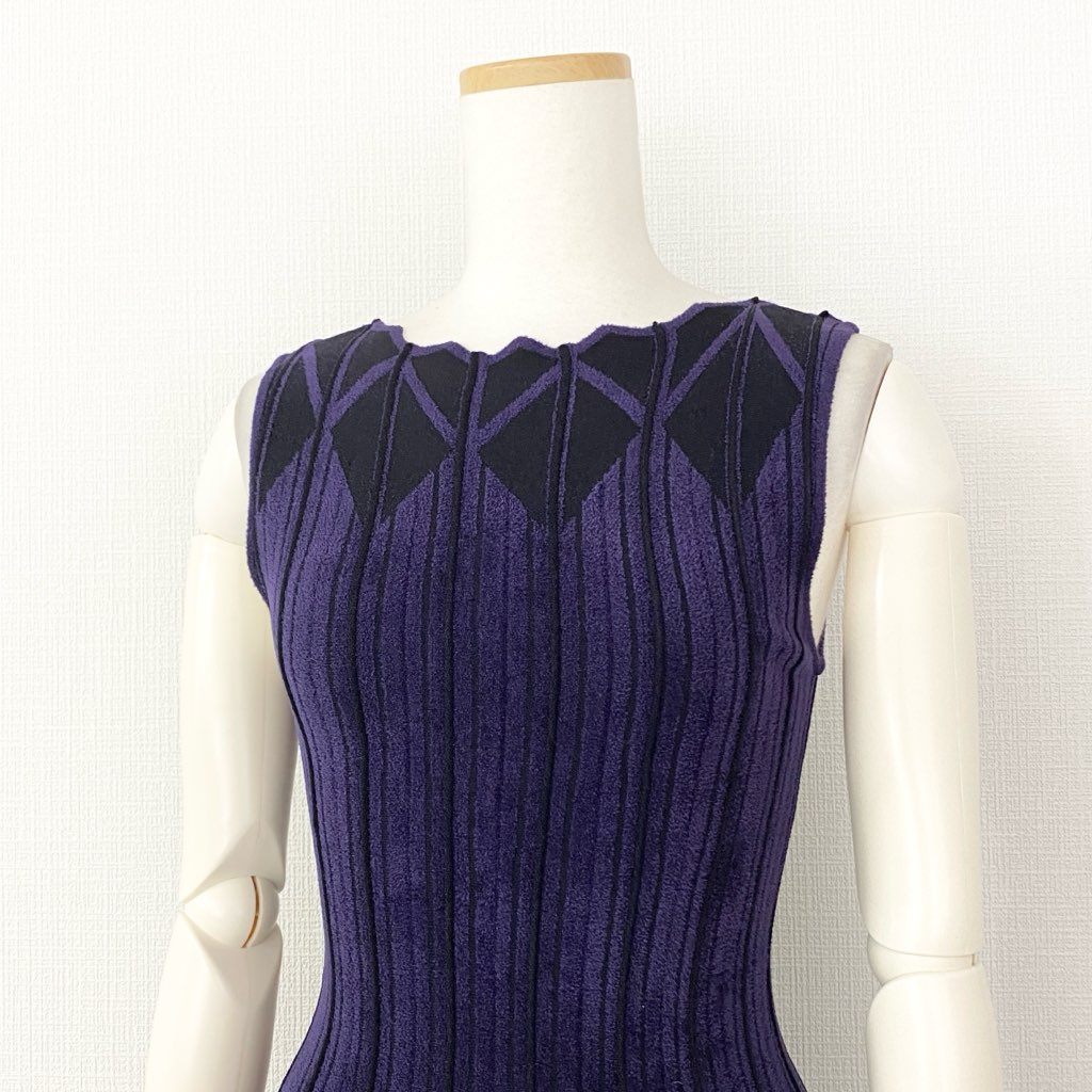 22f8 antonino valenti アントニーノヴァレンティ イタリア製 ノースリーブ ストレッチ ドレス ワンピース 19521-12-51-380 40 ブラック パーパープル