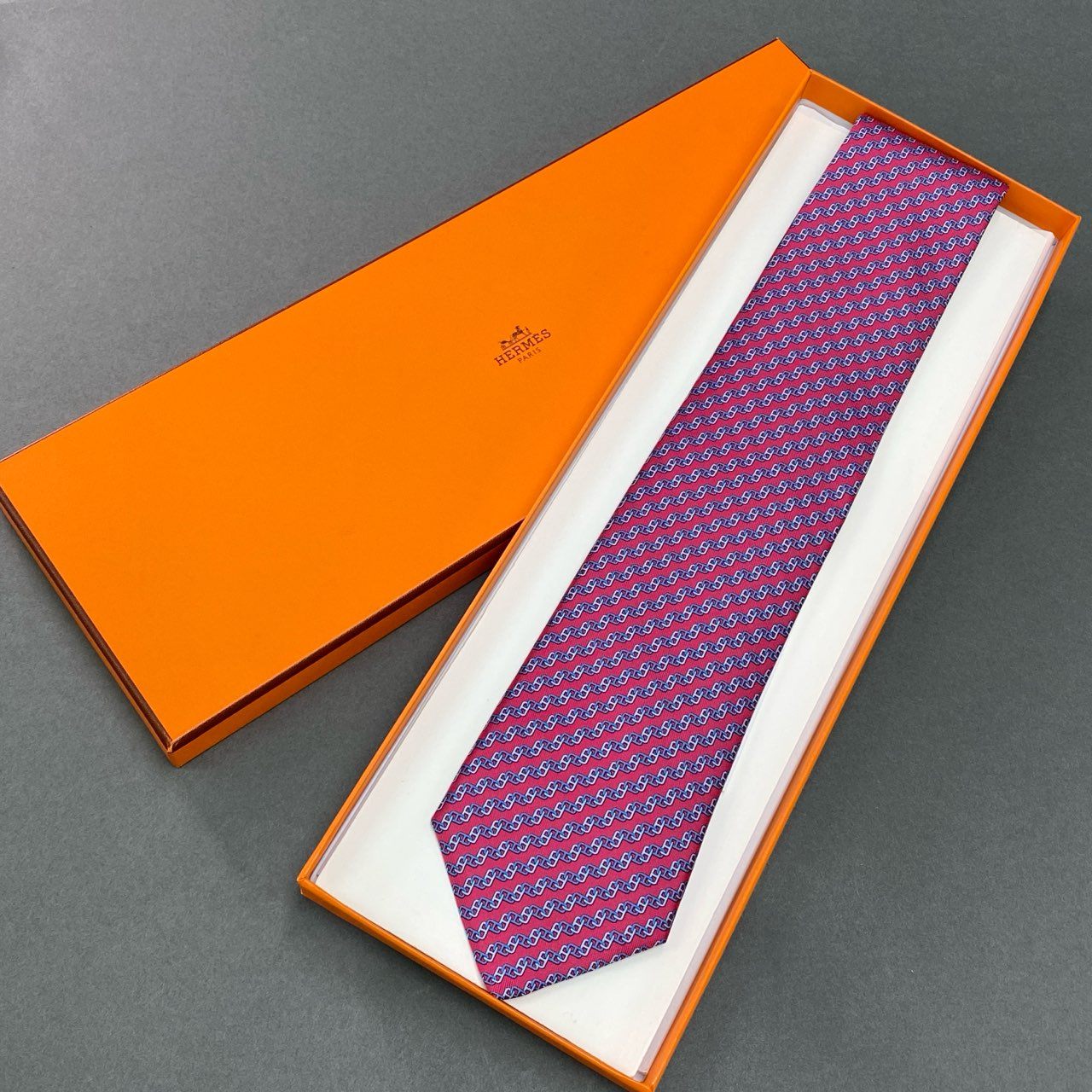 f8 《未使用品》 HERMES エルメス シェーヌダンクル ネクタイ CRAVATE TWILL TIE レッド ブルー シルク ビジネス スーツ フランス製