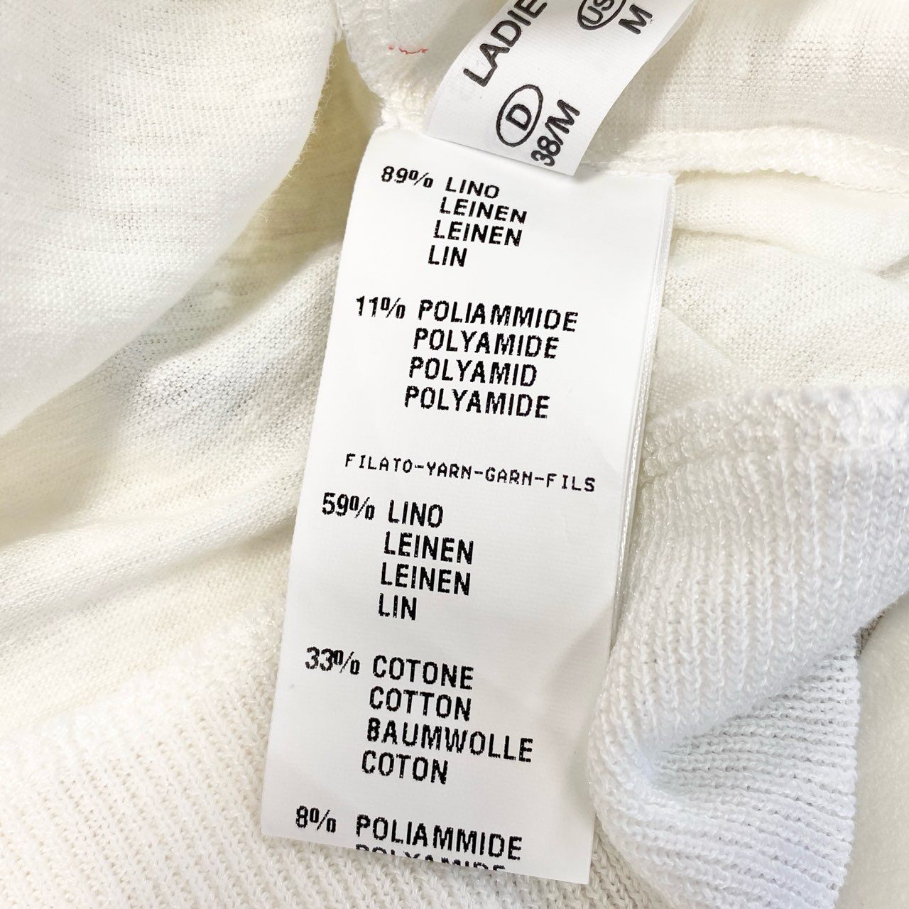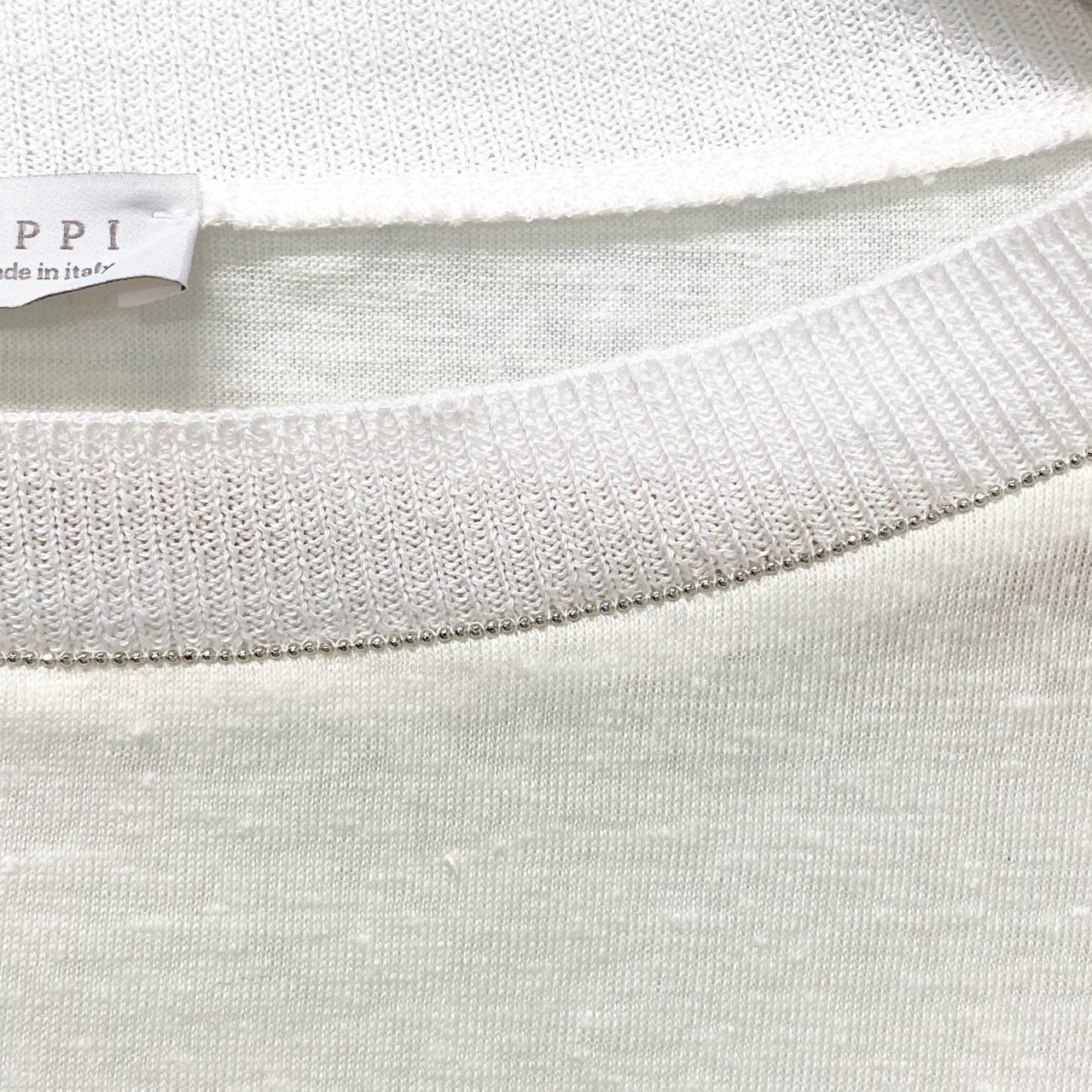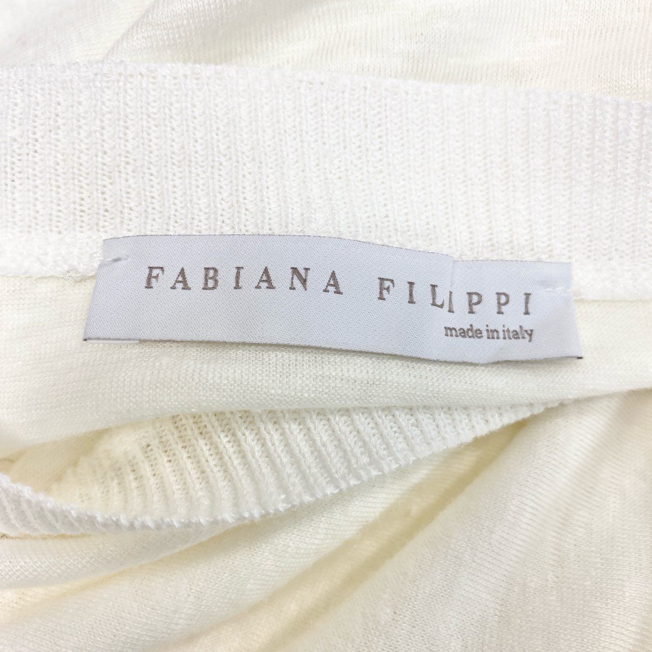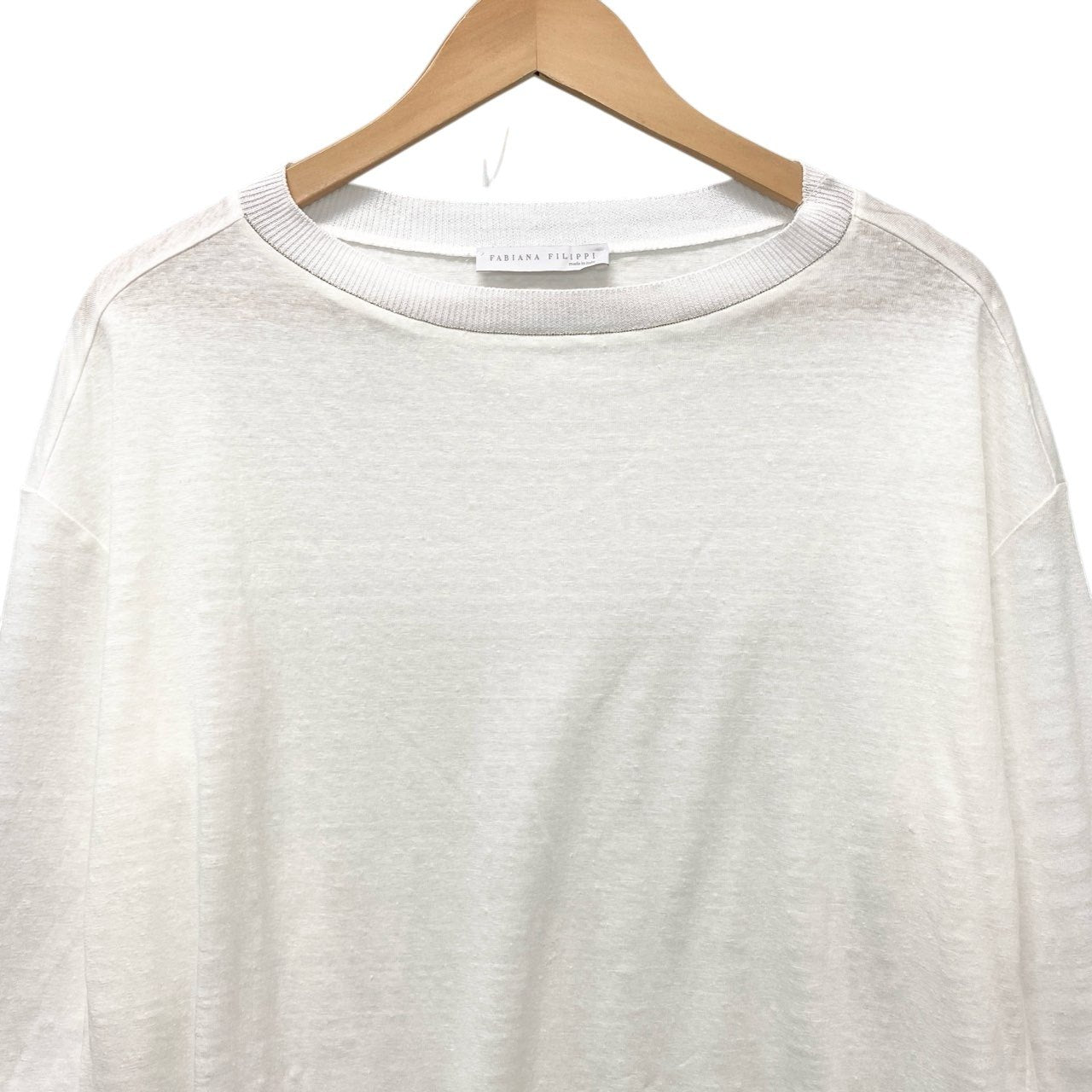 75b26 FABIANA FILIPPI ファビアナフィリッピ 七分袖カットソー リネン混カットソー トップス Mサイズ ホワイト レディース 女性用u02t