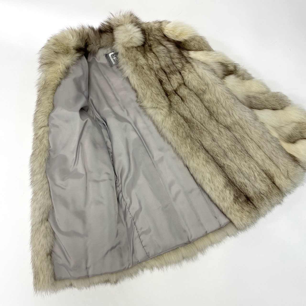 78a14 SAGA FOX サガフォックス 銀サガ 斜め段 極厚 ブルーフォックス コート サイズ10 ホワイト 最高級本毛皮 Fox Fur Coatt18r