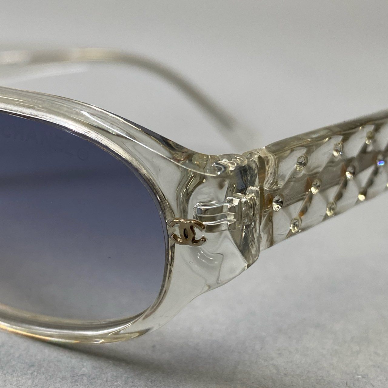 j3 《美品》 CHANEL シャネル マトラッセ サングラス 53□17 クリア グレーグラデーション ラインストーン メガネ 眼鏡 アイウェア ハードケース付t18r