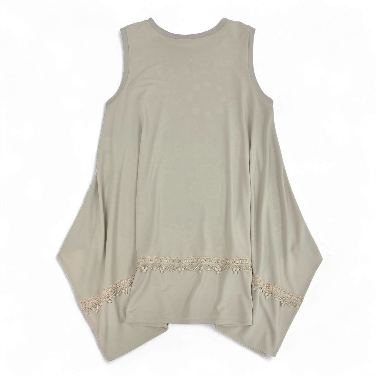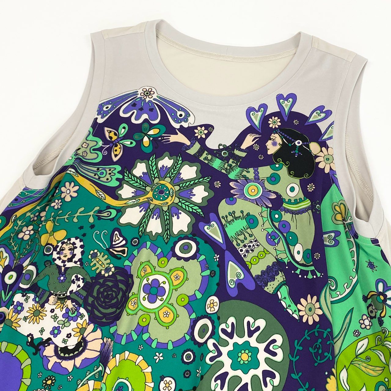 2k19《美品》 TOKUKO 1er VOL トクコプルミエヴォル チュニックワンピース ノースリーブ 裾変形デザイン プリント 刺繍 9 ベージュ レディースu02t