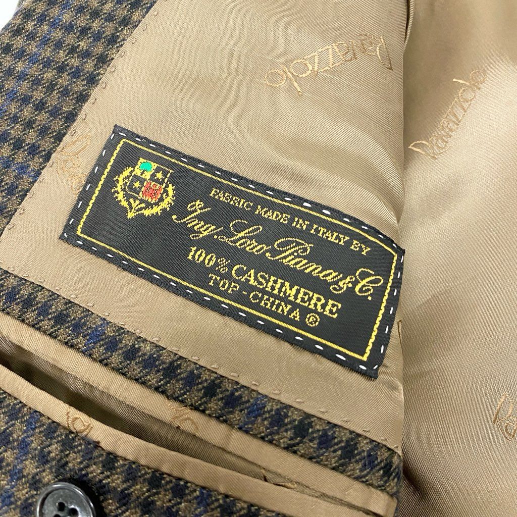 13l27 Ravazzolo ラヴァッツォーロ ロロピアーナ生地 テーラードジャケット カシミヤジャケット チェック柄 メンズ 紳士服 46 ブラウン系 カシミア100%o07t
