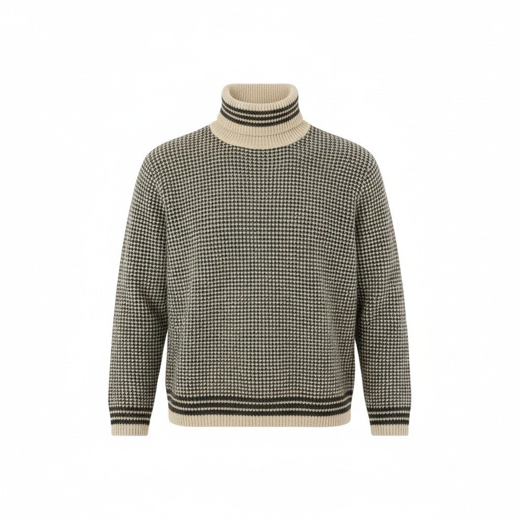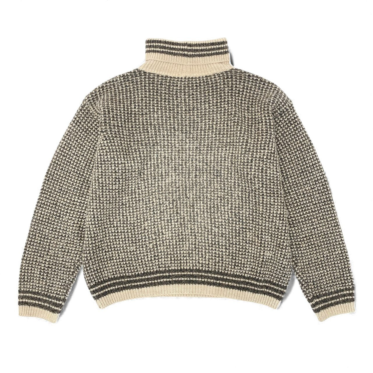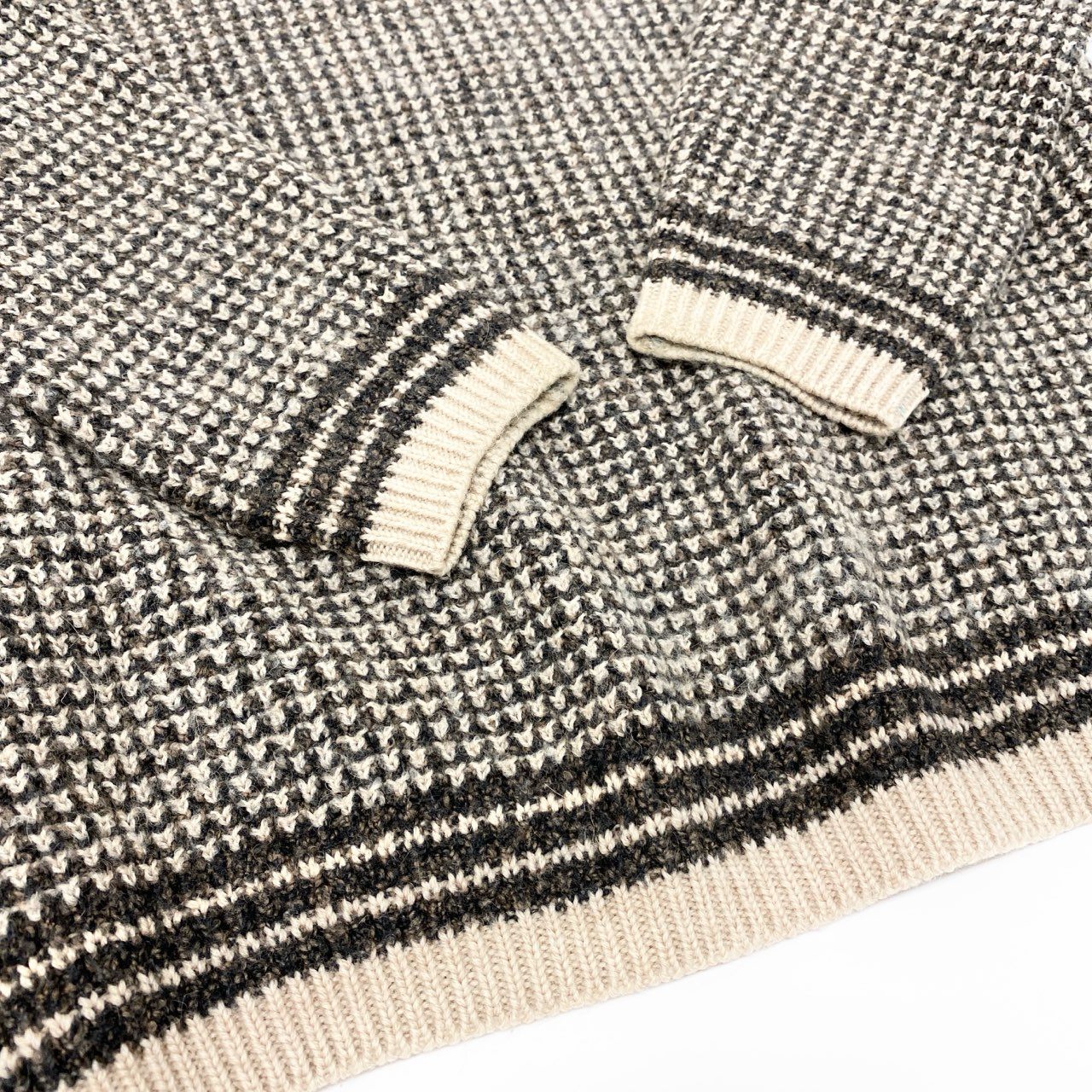 ジョルジオアルマーニ80sヴィンテージのミドルゲージ・ハイネックニットです。ベージュ×ダークブラウンのミックス編みがクラシックで、裾と袖に入ったラインリブが程よいアクセント。ワイドシルエット×短丈のバランスが80年代らしい雰囲気を演出し、1枚で抜群の存在感を発揮します。ミドルゲージの柔らかな質感で暖かく、デイリーから冬のレイヤードスタイルまで幅広く活躍。ヴィンテージ好きにもおすすめのコレクタブルな一着です。