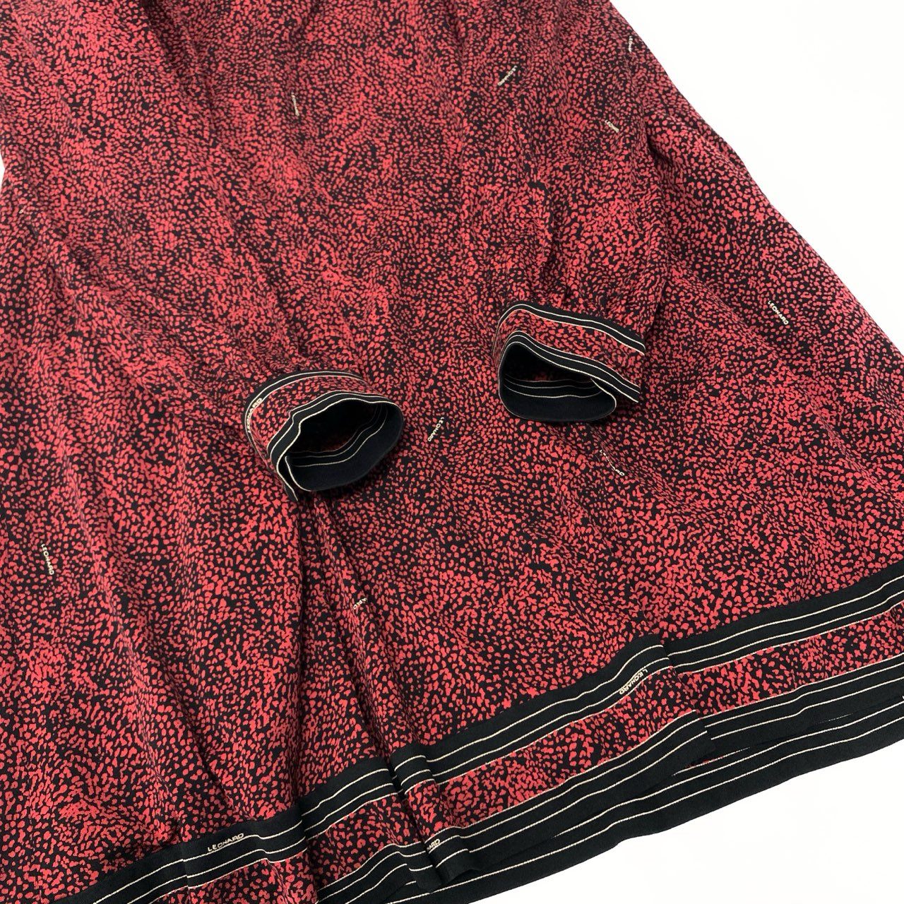 64b7 LEONARD レオナール 長袖ワンピース 総柄 開襟 ウエストマーク 3 レッド シルク100% レディース 女性用u02t