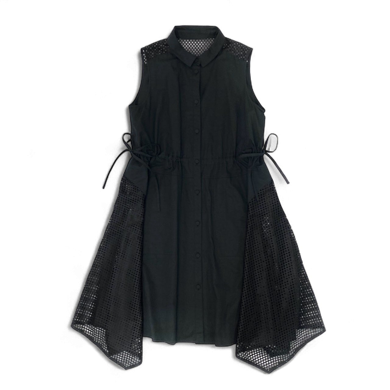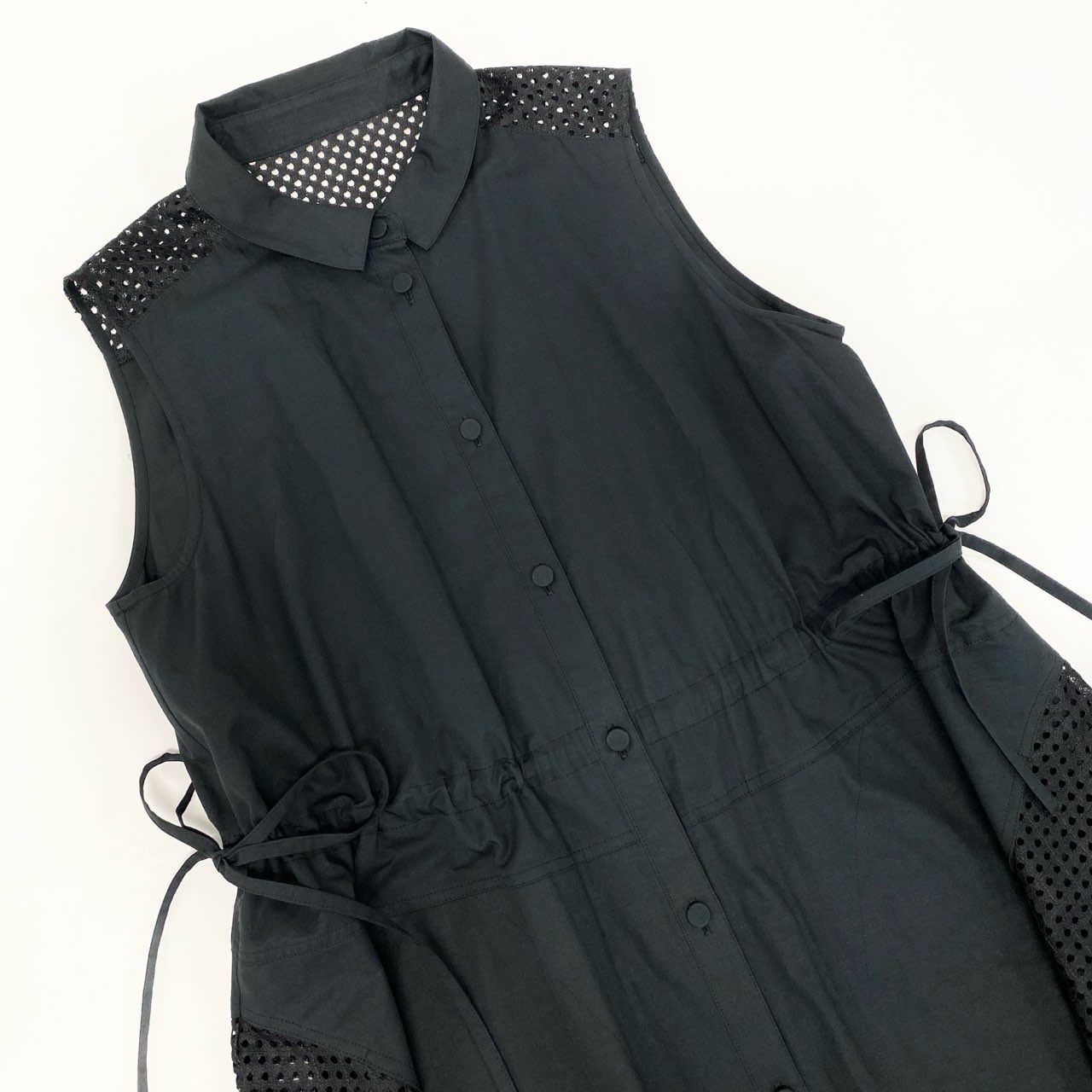 18k20 TOKUKO 1er VOL トクコプルミエヴォル ノースリーブシャツワンピース ロングシャツ カットワークレース サイドリボン コットンリネン レディース 女性用 9 ブラックu02t