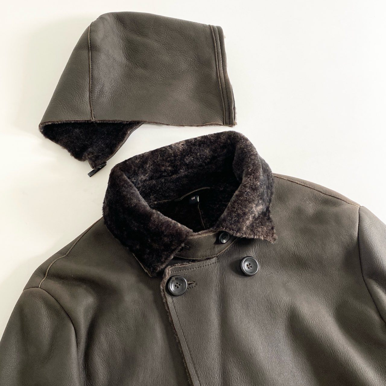 88j2 ARMANI COLLEZIONI アルマーニ コレッツォーニ ムートンコート レザーコート ロングコート フード付き サイズ48 ダークブラウン系 メンズ 男性用