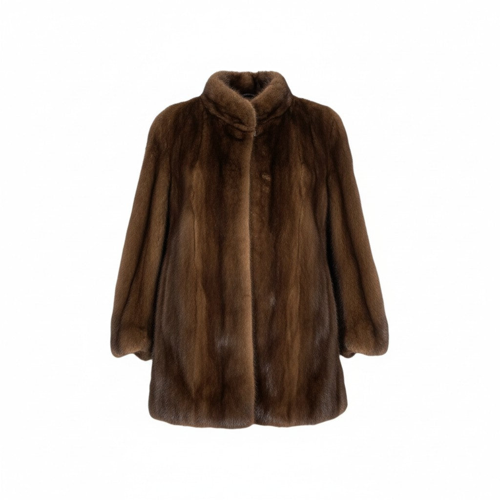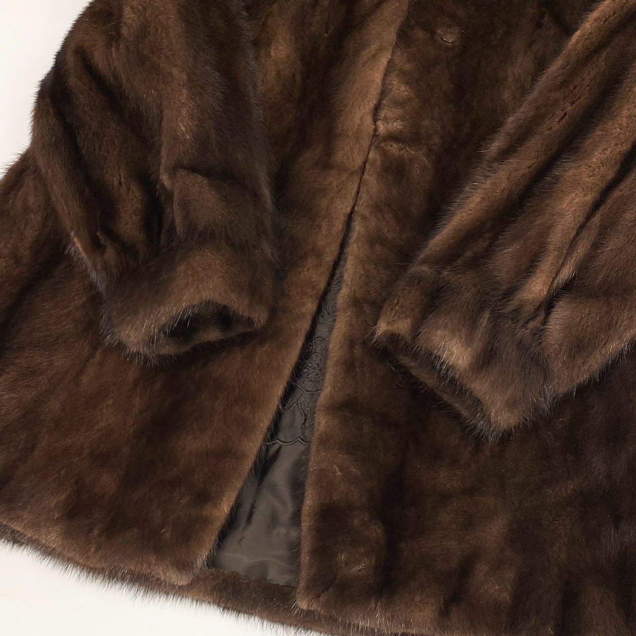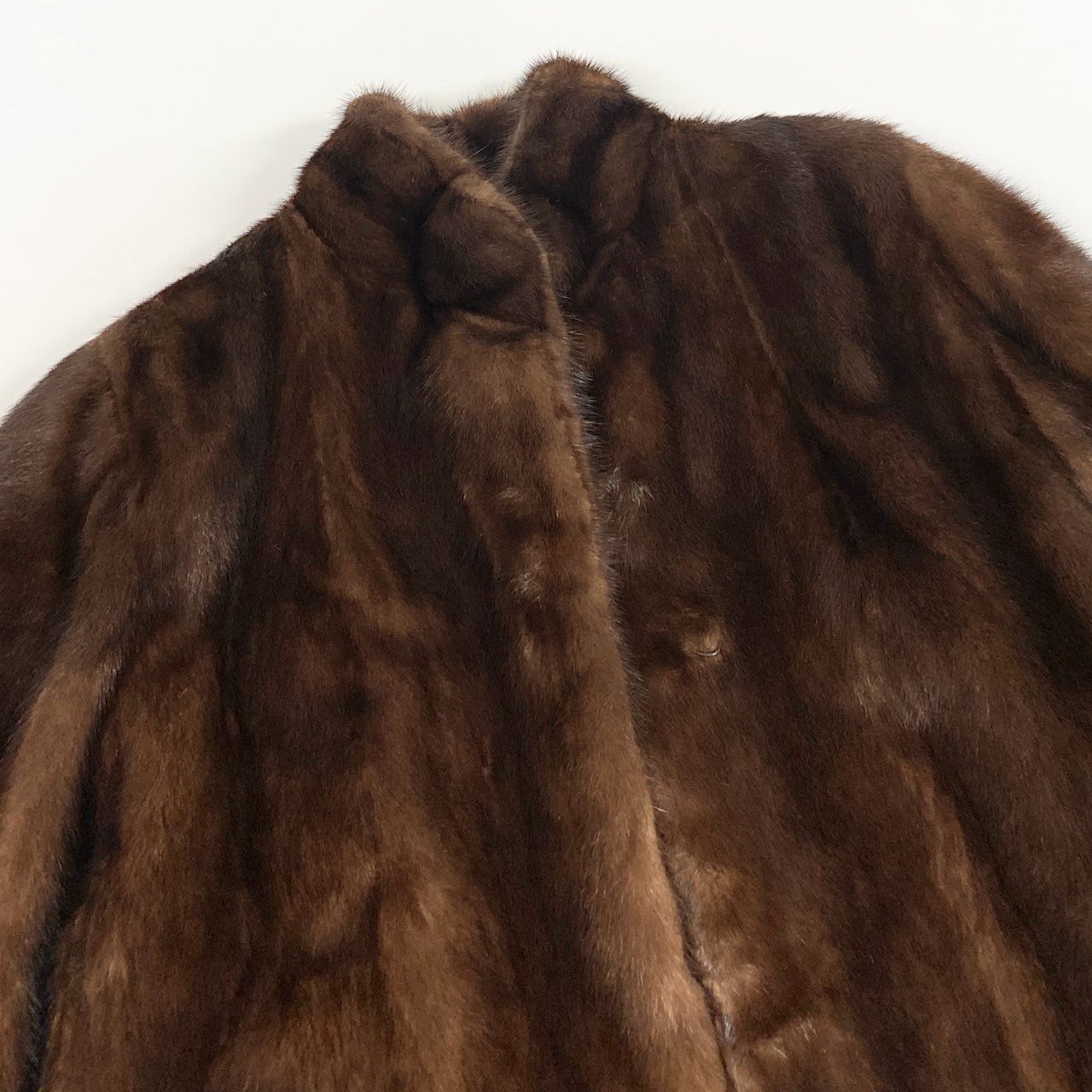 深みのあるダークブラウン系(デミバフカラー)が上品なミンクファーコートです。柄は無地で、毛皮本来の美しい濃淡と自然な艶感が際立ちます。素材は毛足が揃った上質ミンクで、滑らかで密度の高い質感が魅力です。装飾を抑えたシンプルなデザインにより、流行に左右されず長くご愛用いただけます。フォーマルシーンはもちろん、きれいめな日常スタイルの格上げにもおすすめの一着です。