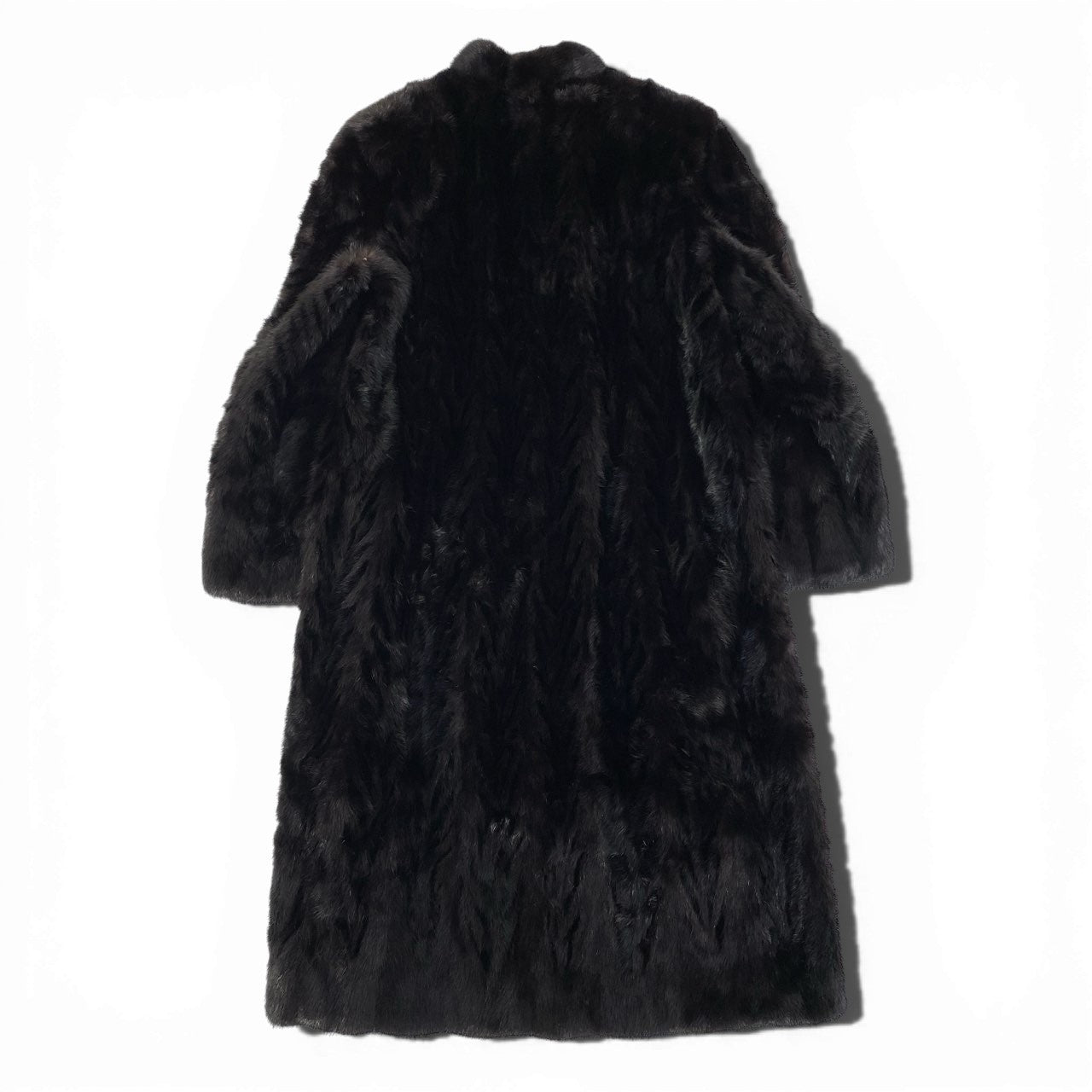 深みのあるダークブラウンカラーが落ち着いた印象を与える、EMBAの希少な超ロング毛皮コートです。 毛足が揃った本毛皮ならではのしっとりとした質感と、上品な光沢がラグジュアリーな雰囲気を演出します。 柄は無地で、装飾を抑えたシンプルなフロントデザインにより、縦長シルエットが美しく際立つ一着です。 存在感のあるロング丈は、防寒性とエレガンスを両立し、特別な外出や格式あるシーンにも最適です。