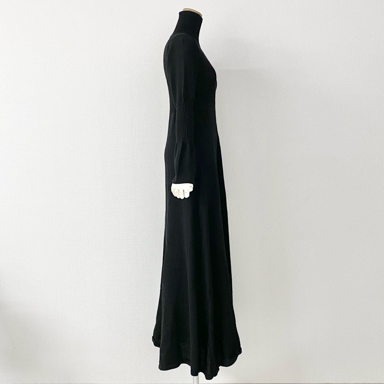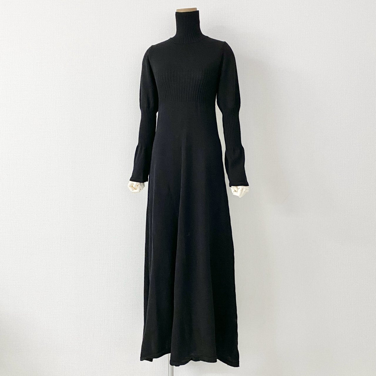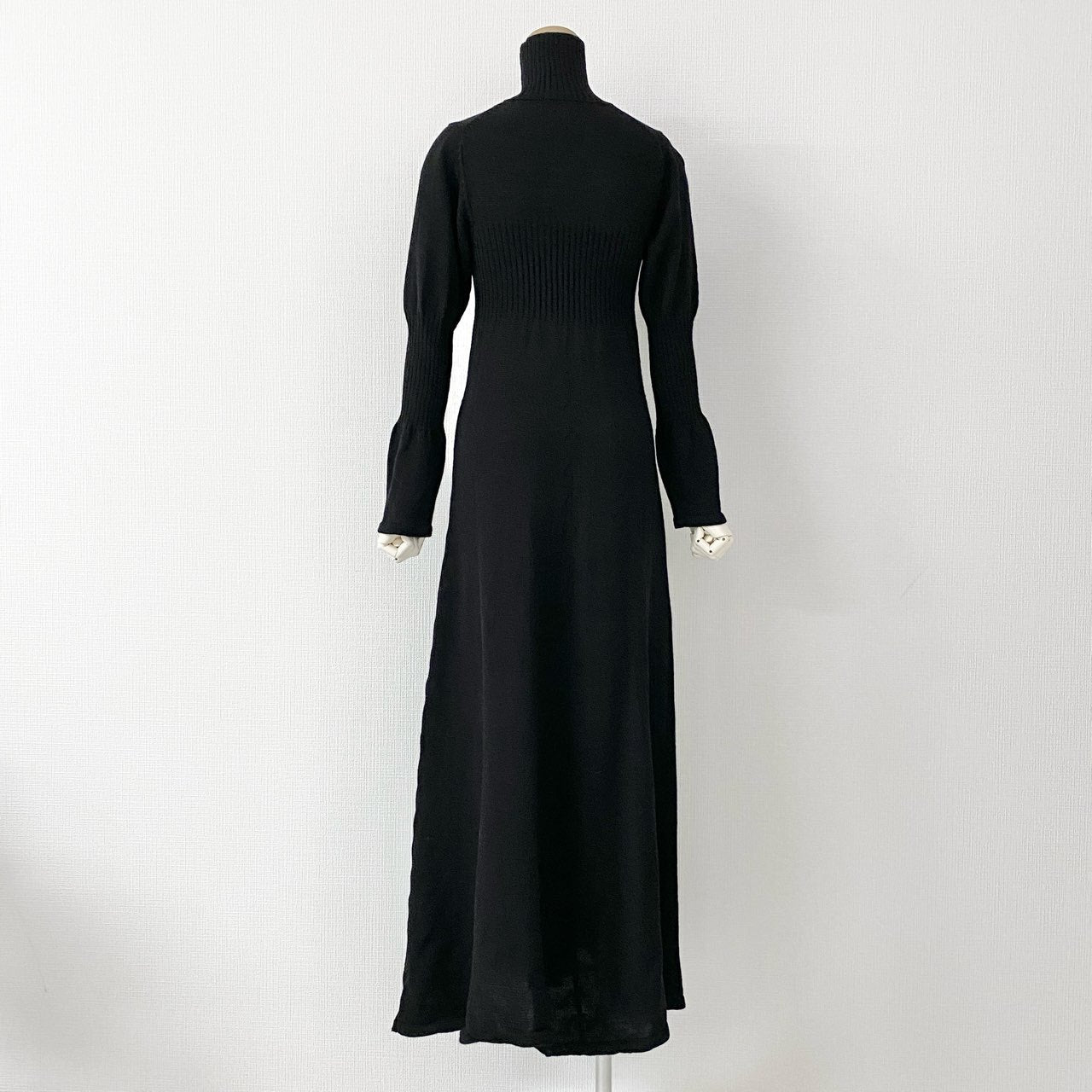 75i12 Y's ワイズ タートルネック 長袖ニットワンピース ドレス 日本製 ヨウジヤマモト ブラック ウール