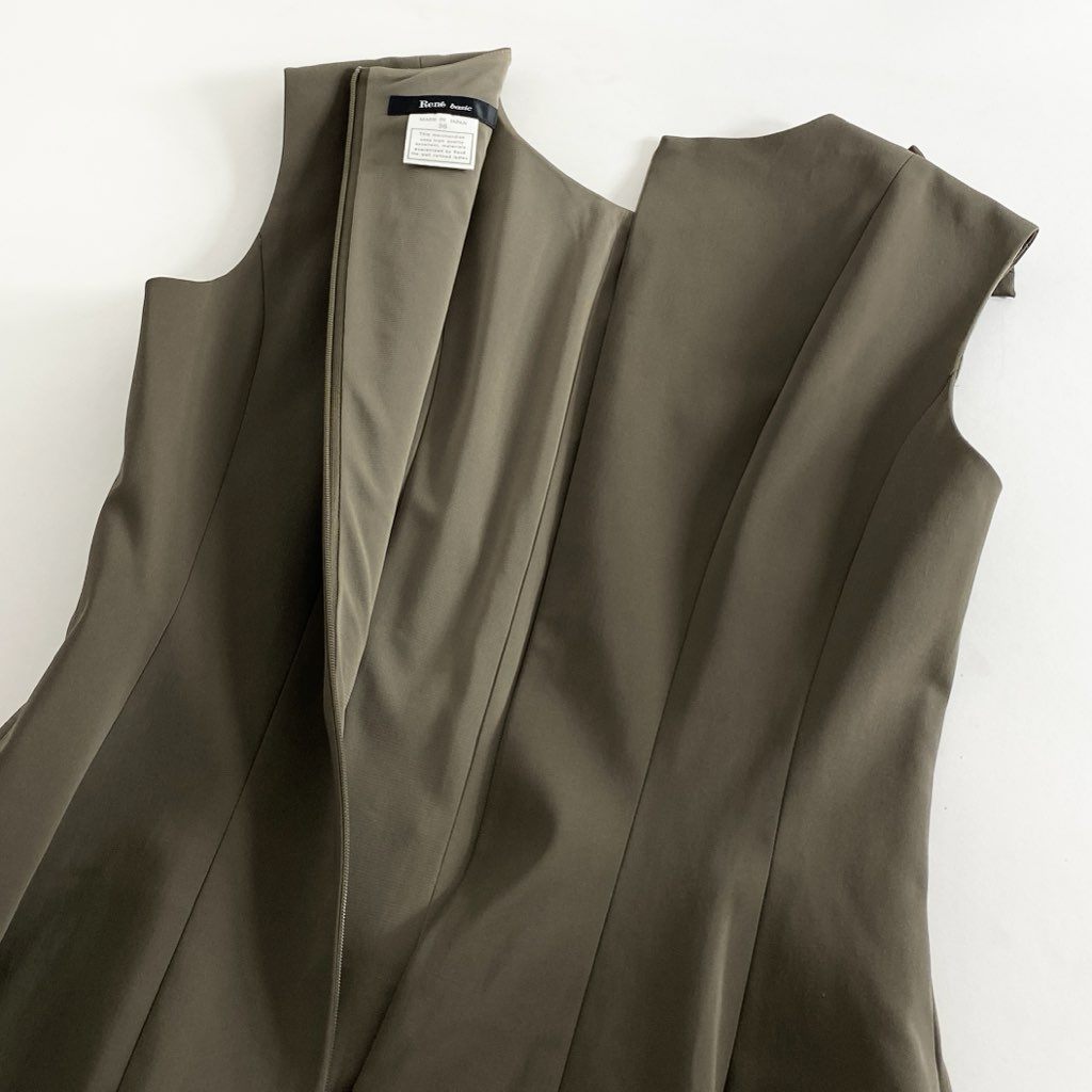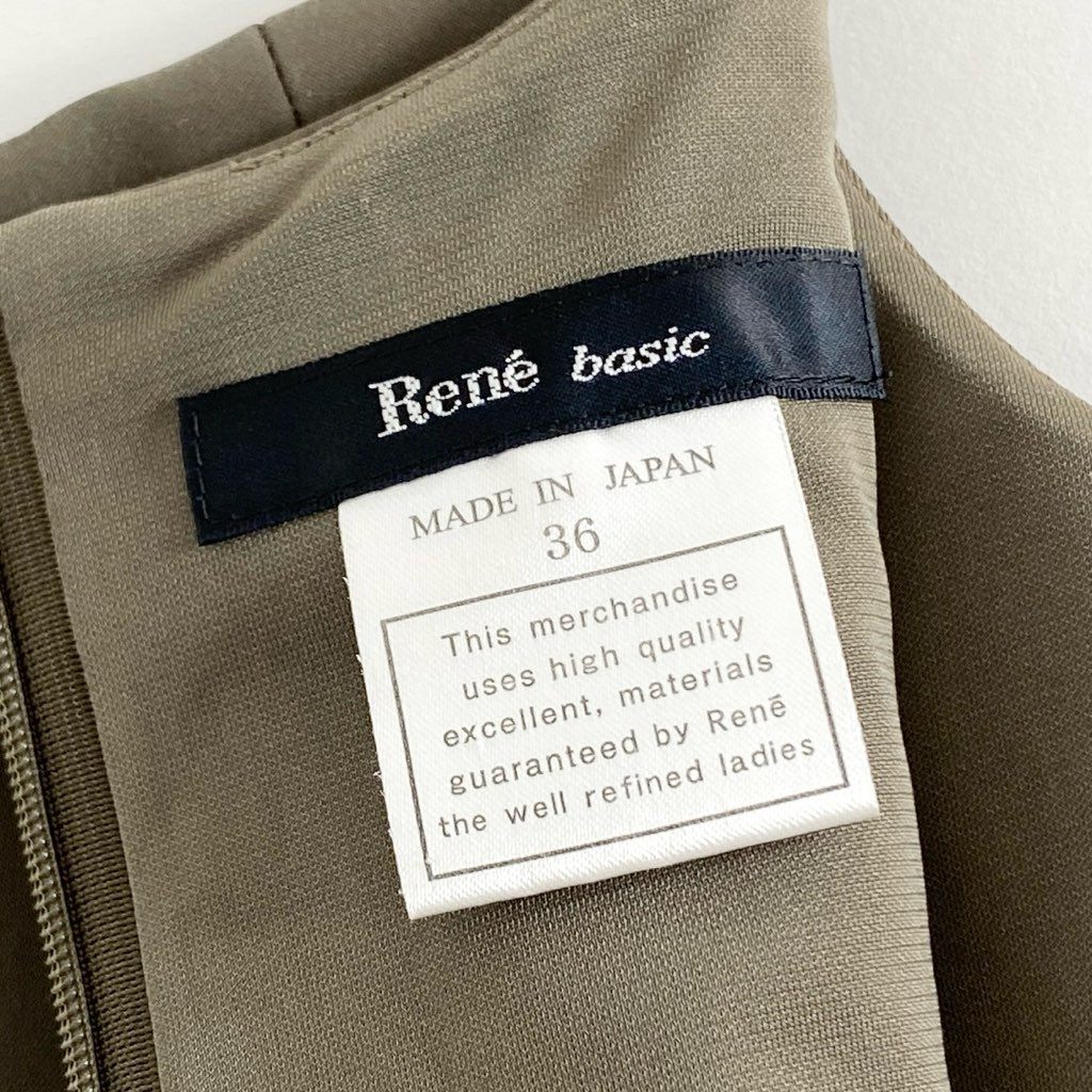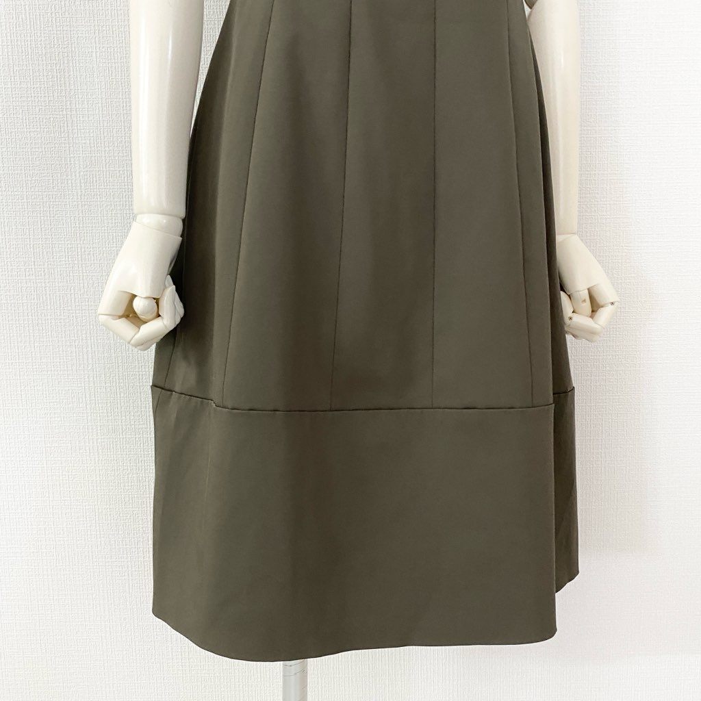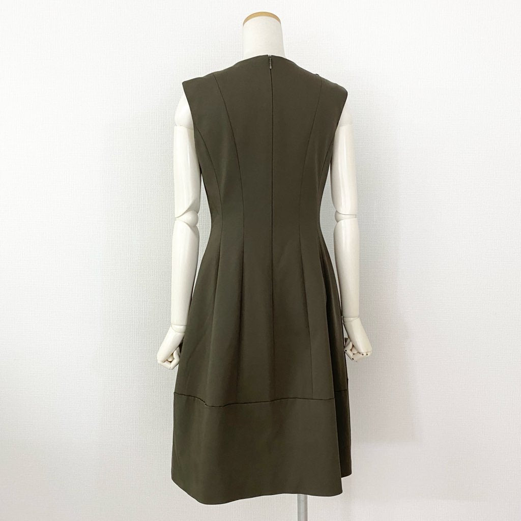 43f18 《美品》 日本製 Rene ルネ リボン装飾 ノースリーブワンピース ドレスワンピース 膝丈ワンピース 5636220 サイズ36 カーキ系 レディース