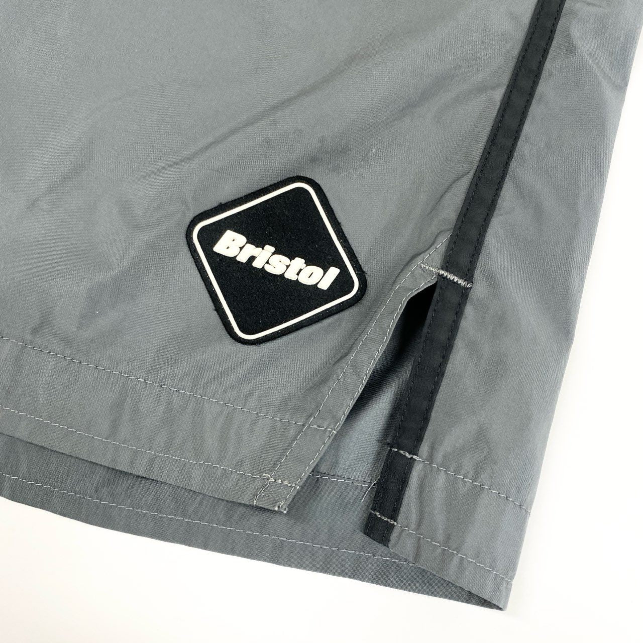 F.C.Real Bristol × NIKEコラボのナイロンショーツ。グレーをベースに、ブラックの切り替えラインが入ったスポーティなデザインです。左裾にはNIKEスウッシュとBristolロゴワッペンを配置し、コラボ感を際立たせています。軽量で速乾性に優れたナイロン素材を使用しており、トレーニングやタウンユース、夏のレジャーまで幅広く活躍できる一本です。