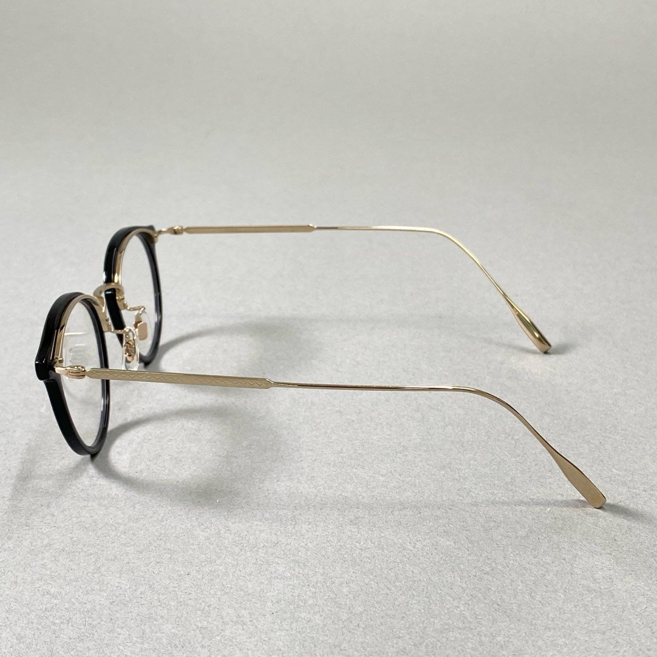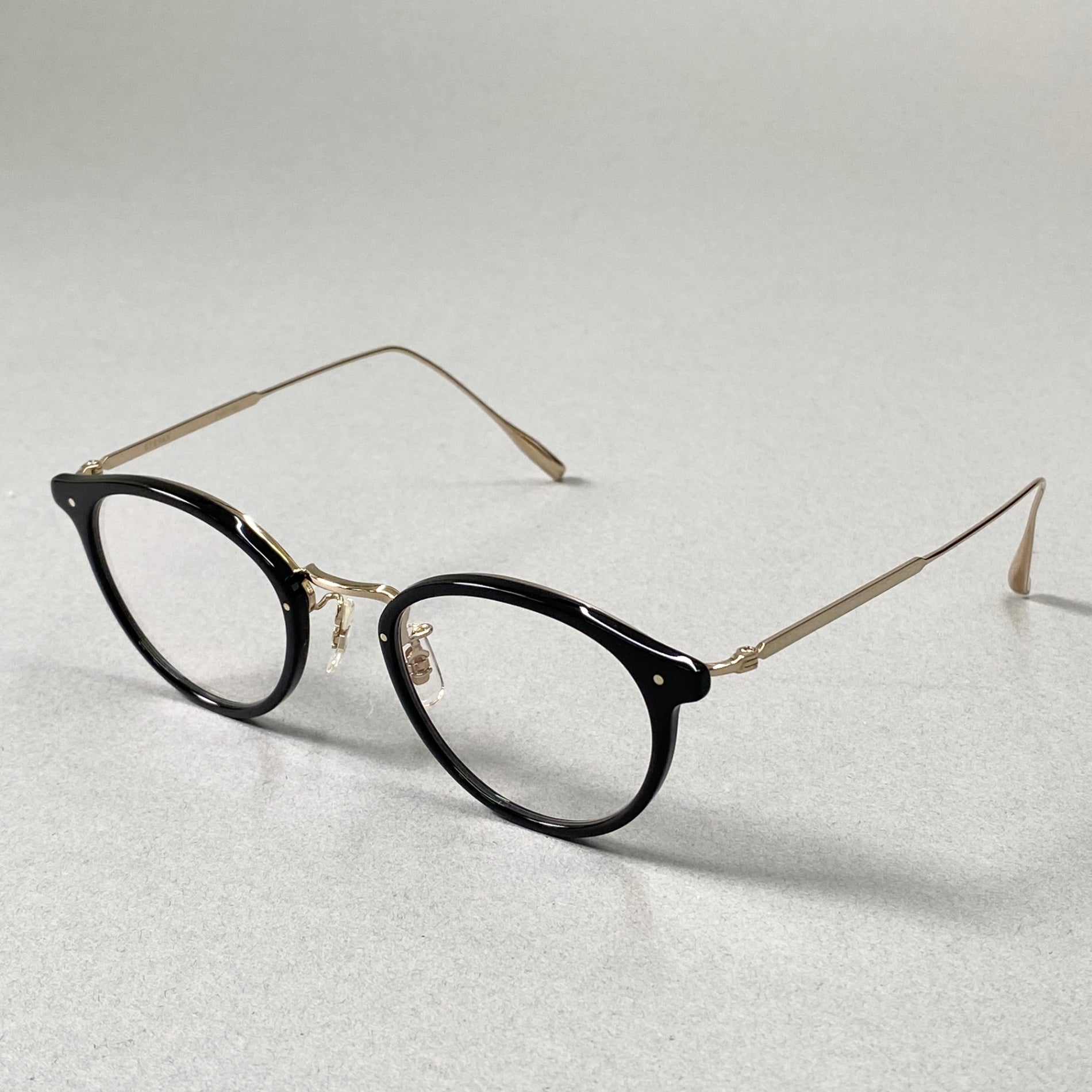 レームカラーは「ブラック×ゴールド」で、上品かつクラシックな印象を演出します。素材は光沢のあるメタルとアセテートのコンビネーションで、高級感と耐久性を兼ね備えています。EYEVANの「Acosta」モデルは、丸みのあるボストン型シルエットに繊細なブリッジとリムの装飾が特徴。オン・オフ問わず幅広いスタイルに馴染み、大人の知的な雰囲気を引き立ててくれる一本です。