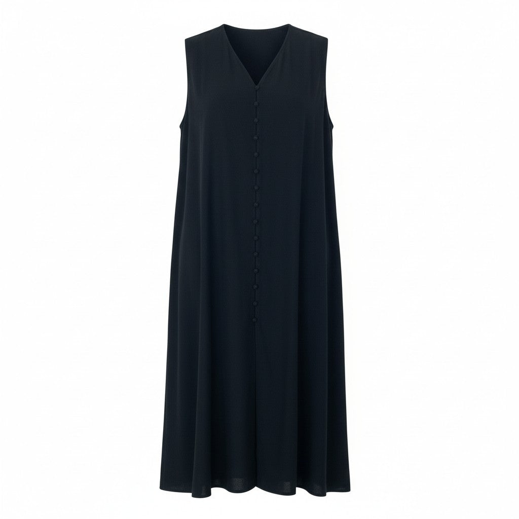 深みのあるブラックで仕立てた、JURGEN LEHLらしいミニマルかつ上質感のあるロングワンピースです。マットで落ち着いた質感の生地が、ストンと美しい縦ラインを描き、着るだけで洗練された印象に。フロントには同色のくるみボタンを並べたシンプルなデザインで、静かな存在感が魅力です。ゆとりのあるシルエットで動きやすく、日常使いからお出かけまで幅広く活躍。季節に合わせてレイヤードも楽しめる万能な一着です。