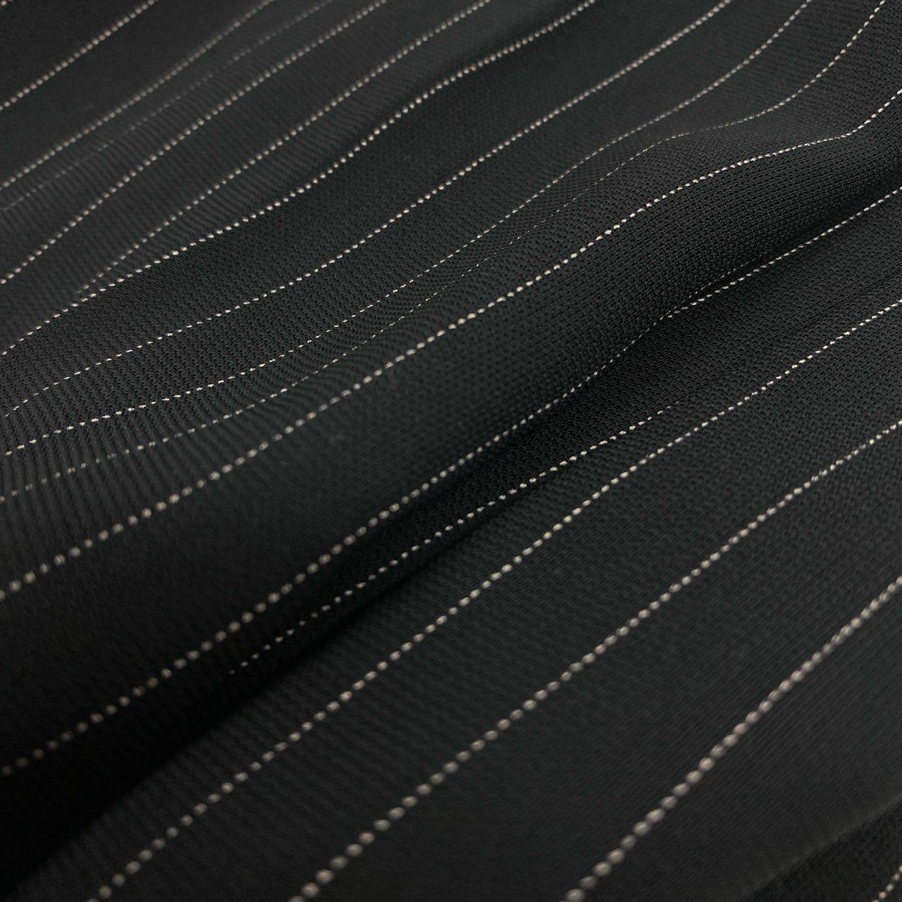 シックなブラック地にホワイトのピンストライプ柄が映える、MM6のスラックスパンツです。マットでややドライタッチな上品さを持ち、オフィスからフォーマルまで活躍。クロップド丈とセンタープレスが脚をまっすぐ見せる効果をプラスします。シンプルながらモードな存在感があり、同系色のジャケットと合わせたセットアップスタイルもおすすめです。