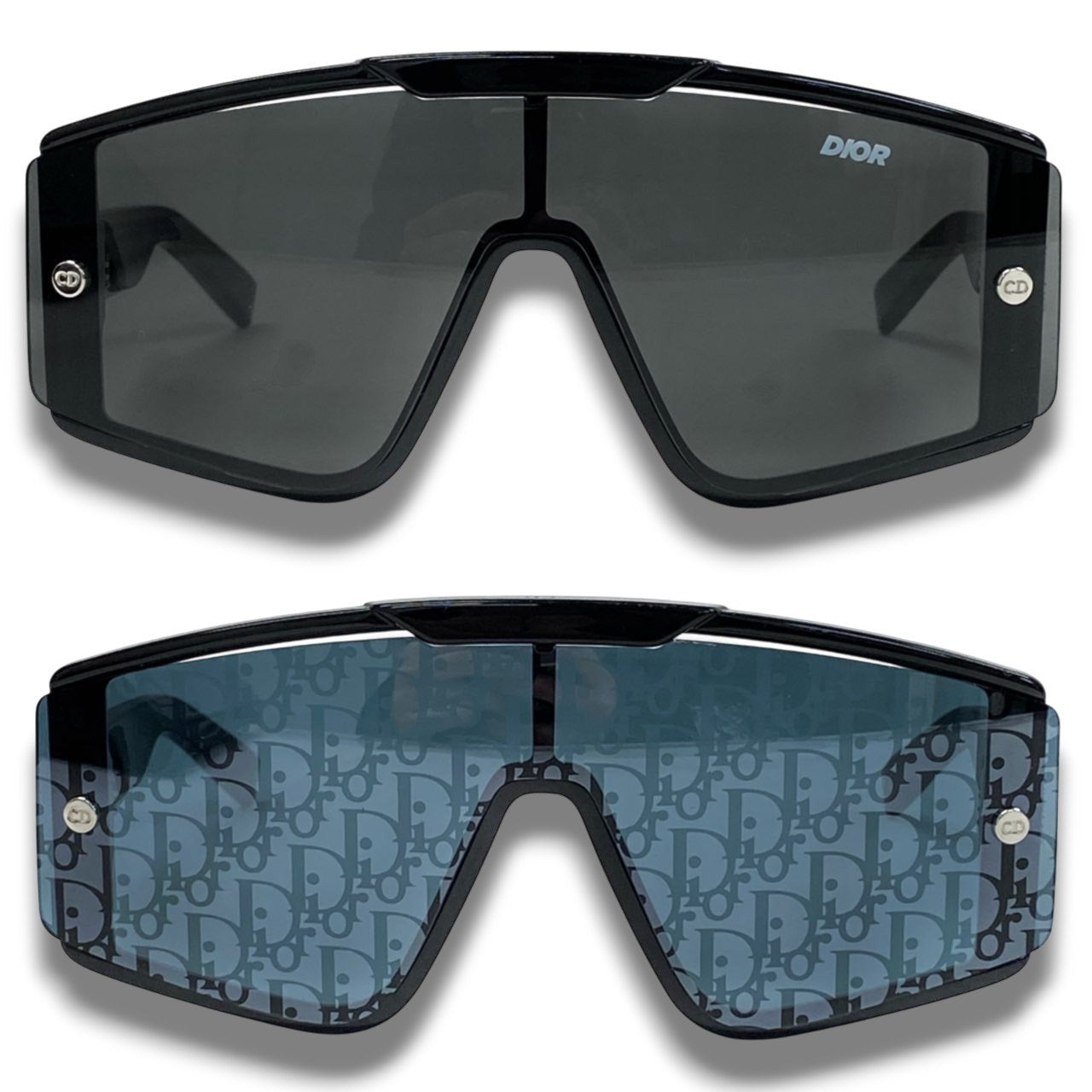 艶のあるブラックフレームに、オブリーク柄(総柄ロゴパターン)を配したブルーグレーレンズが印象的なDiorxtrem Maskサングラスです。シールド型のワイドレンズは、モダンで近未来的なシルエットを演出します。テンプルにはChristian Diorロゴ、サイドにはCDメタルパーツを配し、ディテールまでラグジュアリーな仕上がりです。替えレンズ付きでスタイリングやシーンに合わせて印象を変えられる、存在感抜群のメンズアイウェアです。