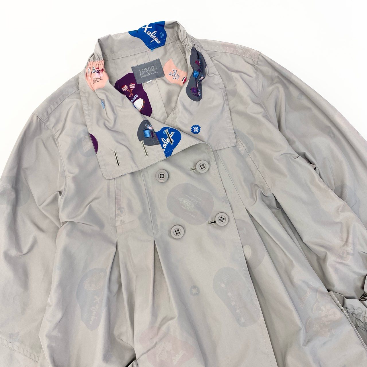 72a28《美品》 TOKUKO 1er VOL トクコプルミエヴォル 薄手コート ジャケット 裏地総柄 Aライン 9 ベージュ ポリエステル レディースu02t