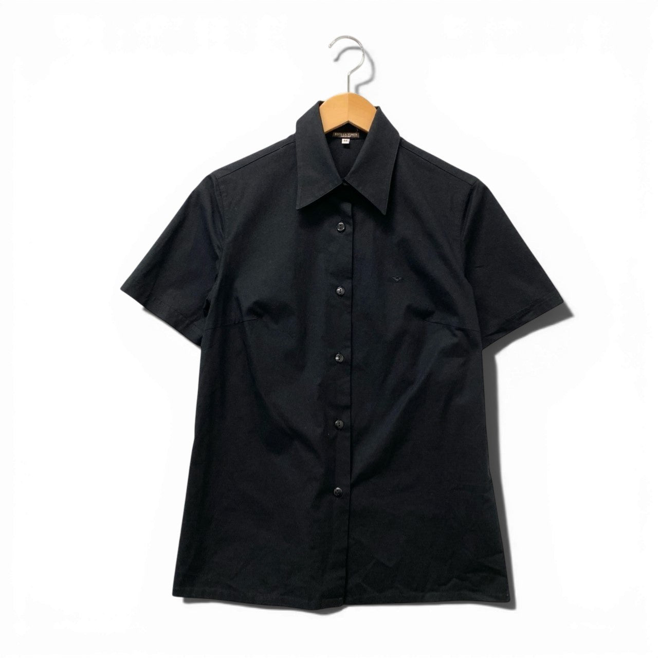 Eb17 【美品】BOTTEGA VENETA ボッテガヴェネタ 半袖シャツ ワイシャツ シャツブラウス ロゴ刺繍 44サイズ ブラック レディース 女性用u02t