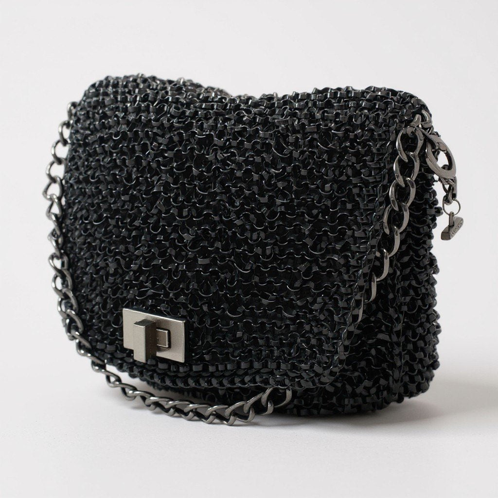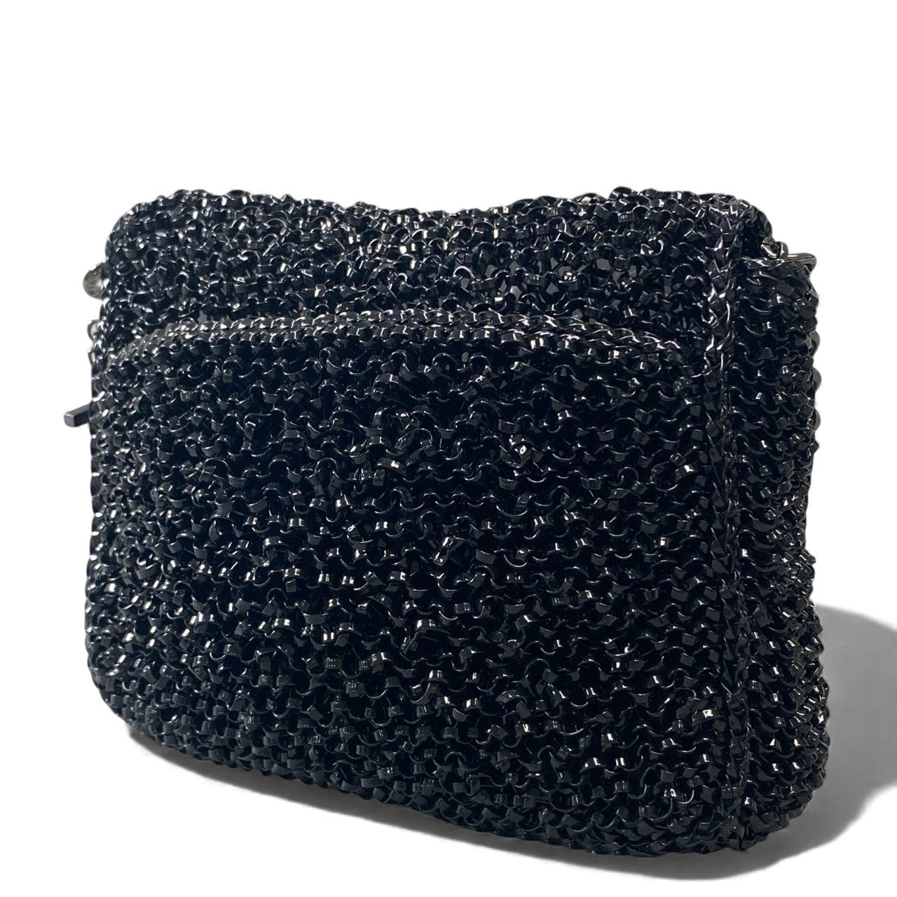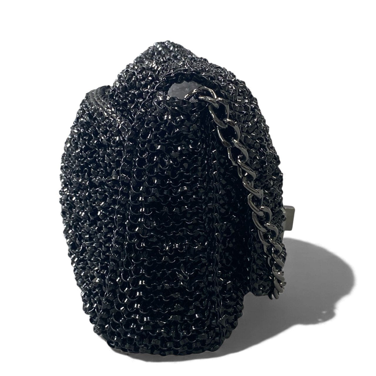 色味は艶のある ブラックワイヤー を編み上げた、ANTEPRIMA らしい華やかさあふれるルッケットワイヤーハンドバッグです。 メタリックブラックのチェーンとガンメタ調のターンロック金具が、控えめながらモード感のあるアクセントを加えています。 立体的なワイヤーの編み込みは光を受けて上品に輝き、ドレススタイルにも合わせやすい質感です。 ミニサイズながらマチ幅8cmで小物がしっかり収まり、食事会・結婚式・お出かけなど幅広いシーンで活躍します。 普段のコーデに一点投入するだけで華やかさが増す、大人のためのミニバッグです。