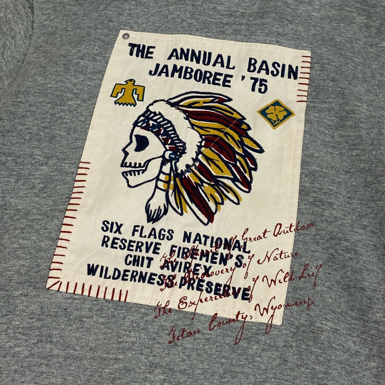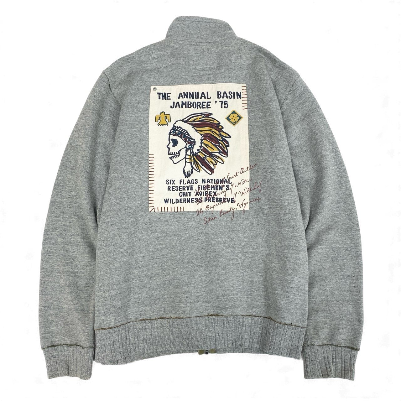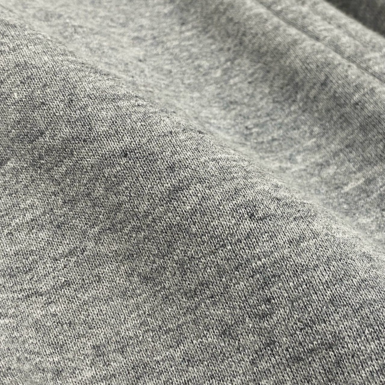 AVIREXの裏起毛スタンドジップアップジャケットで、杢調ライトグレーの落ち着いたカラーが特徴です。 表地は柔らかくマットなスウェット素材で、内側は裏起毛仕上げとなっており保温性を確保。 フロントには星条旗モチーフ刺繍とネイティブアメリカン柄刺繍が施され、ブランドらしいミリタリー×アメカジテイストを演出します。 スタンドカラーとフルジップ仕様で着脱しやすく、タウンユース、休日の外出、リラックスシーンまで幅広く活躍する一着です。