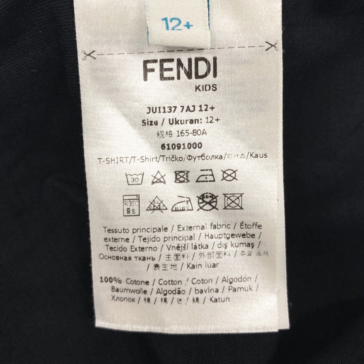 33k19 FENDI フェンディ ロゴプリント Tシャツ JUI137 12+ ブラック レディース KIDS キッズ ジュニア カットソー