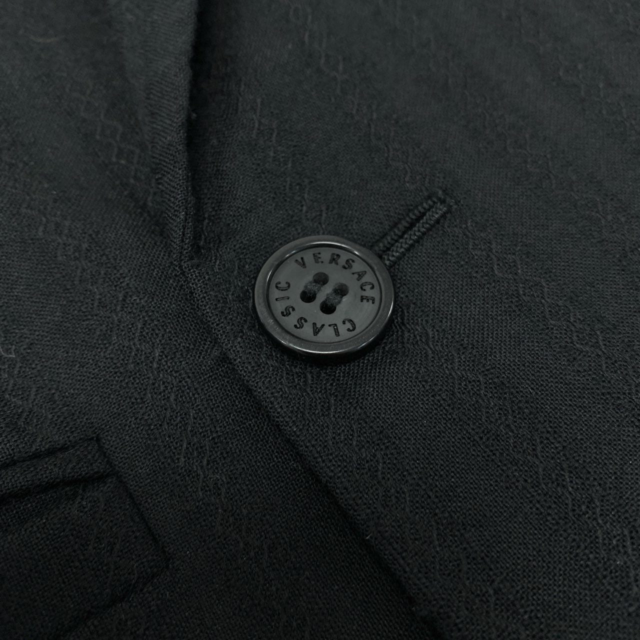 51Ⅼ2 VERSACE CLASSIC ヴェルサーチ クラシック ダブルブレスト スーツセットアップ 総柄 46 ブラック メンズu02t