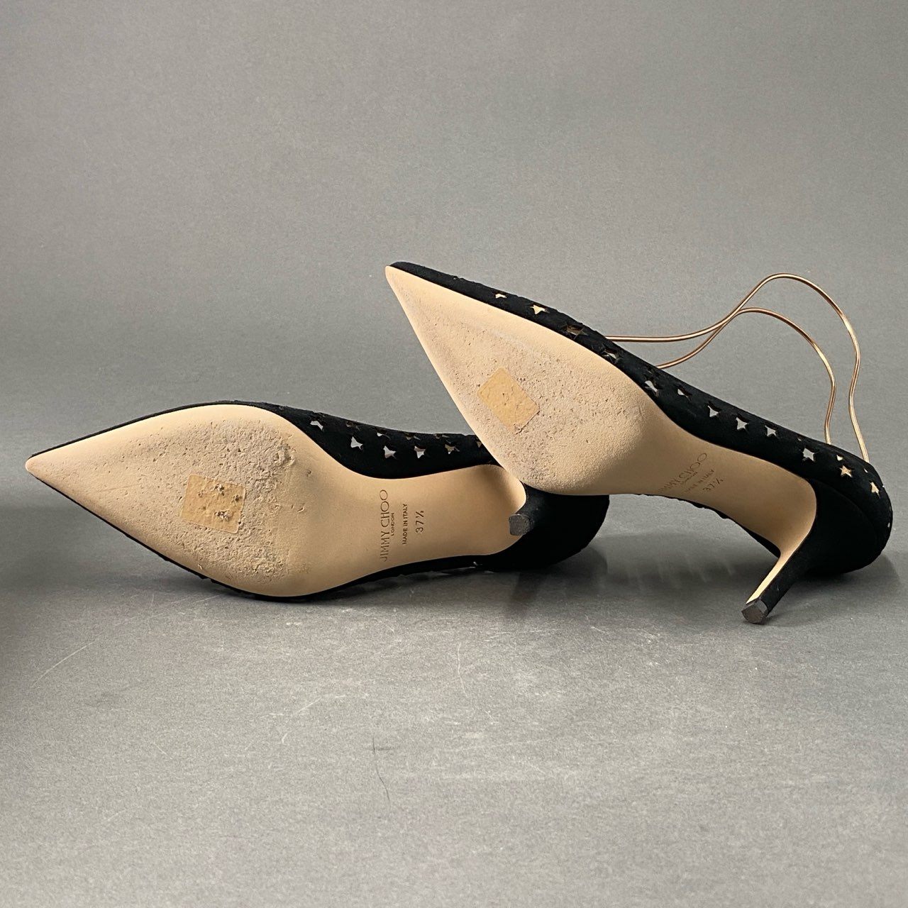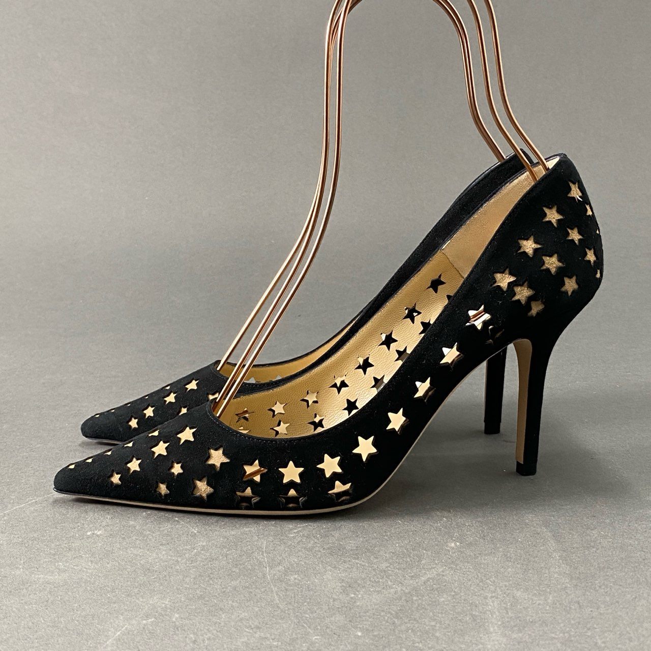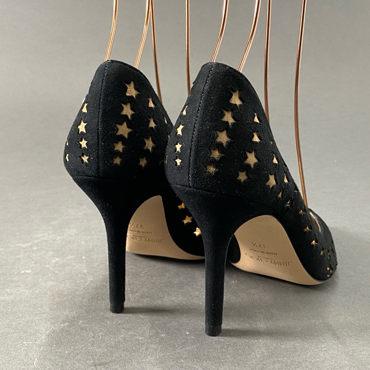 3d16 《極美品》 JIMMY CHOO ジミーチュウ スターパンチング パンプス 37 1/2 ブラック スエードレザー シューズ イタリア製 箱有