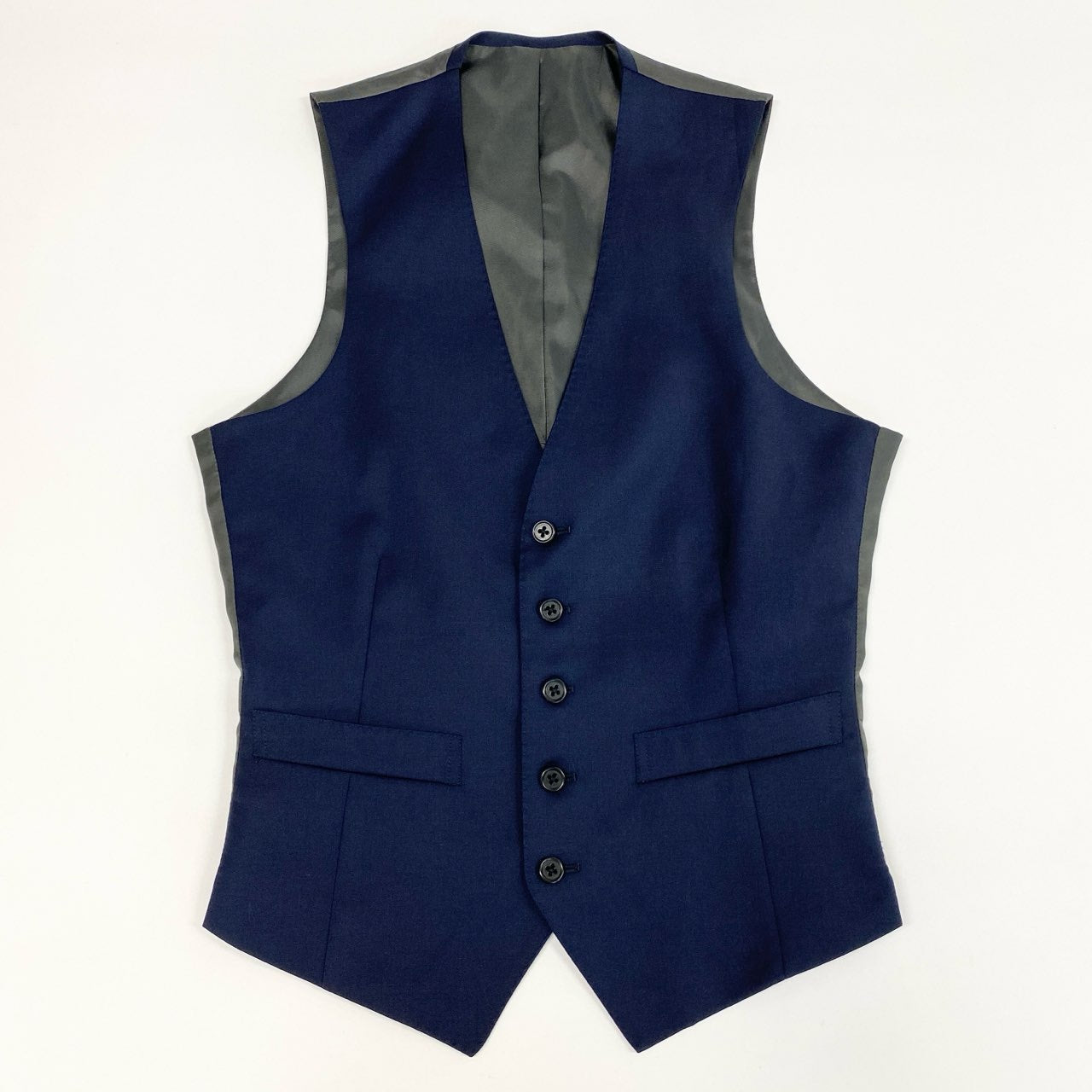GINZA GLOBAL STYLEの「KAISER」スリーピーススーツは、上品なネイビーとマットな質感が特徴のシングルスーツ。シンプルながら立体的なシルエットで、ジャケット・ベスト・パンツすべてが美しく調和する設計です。裏地はグレーの配色で落ち着いた印象を演出し、着用時の通気性と快適さにも優れています。ビジネスシーンはもちろん、式典やパーティなどフォーマルな場にもふさわしい一着です。