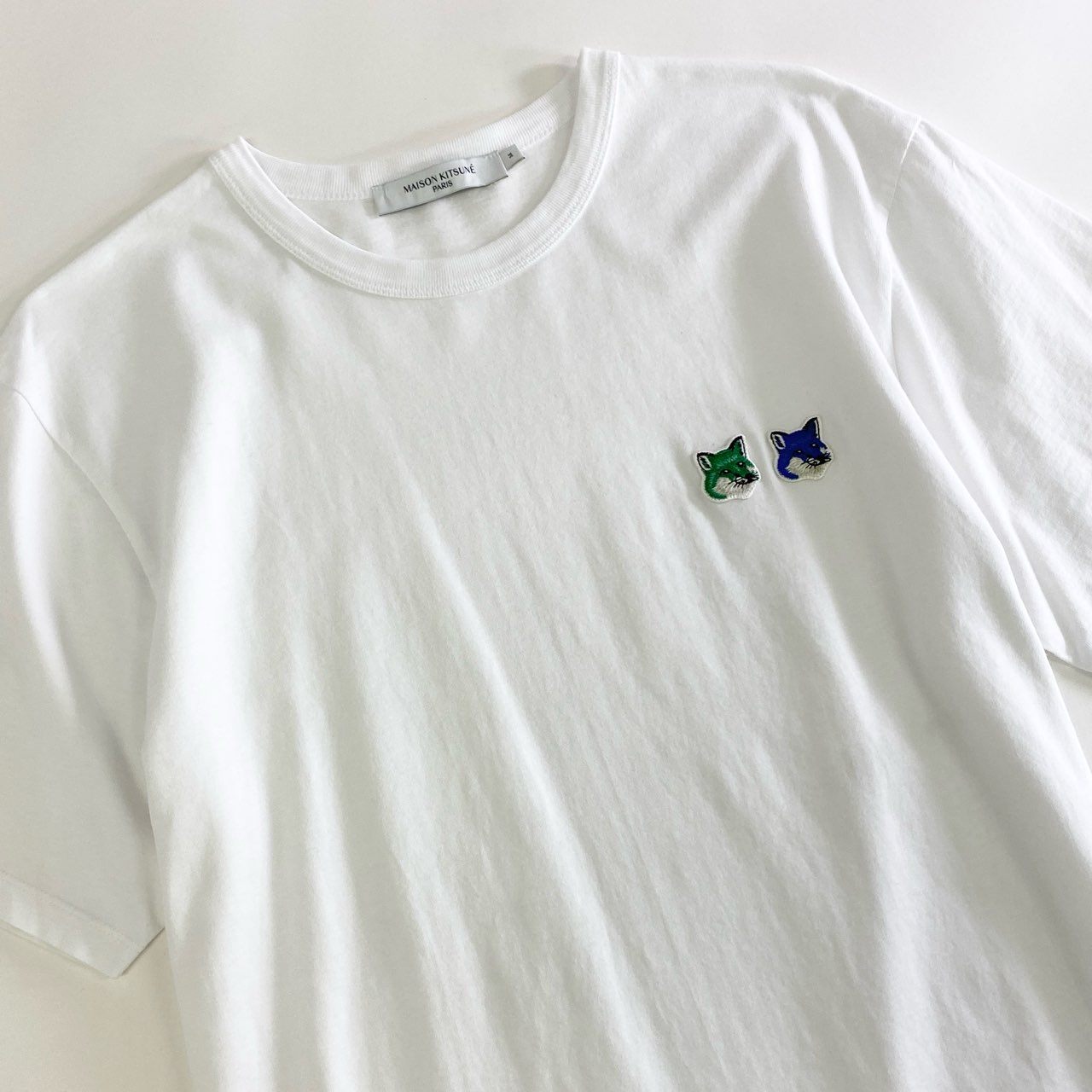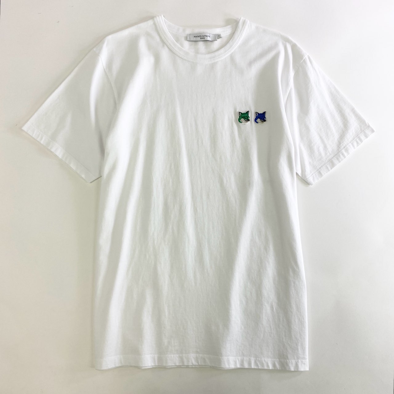 52k9 《美品》 MAISON KITSUNE メゾンキツネ モノクローム ダブルフォックスパッチ Tシャツ M ホワイト カットソー TEE