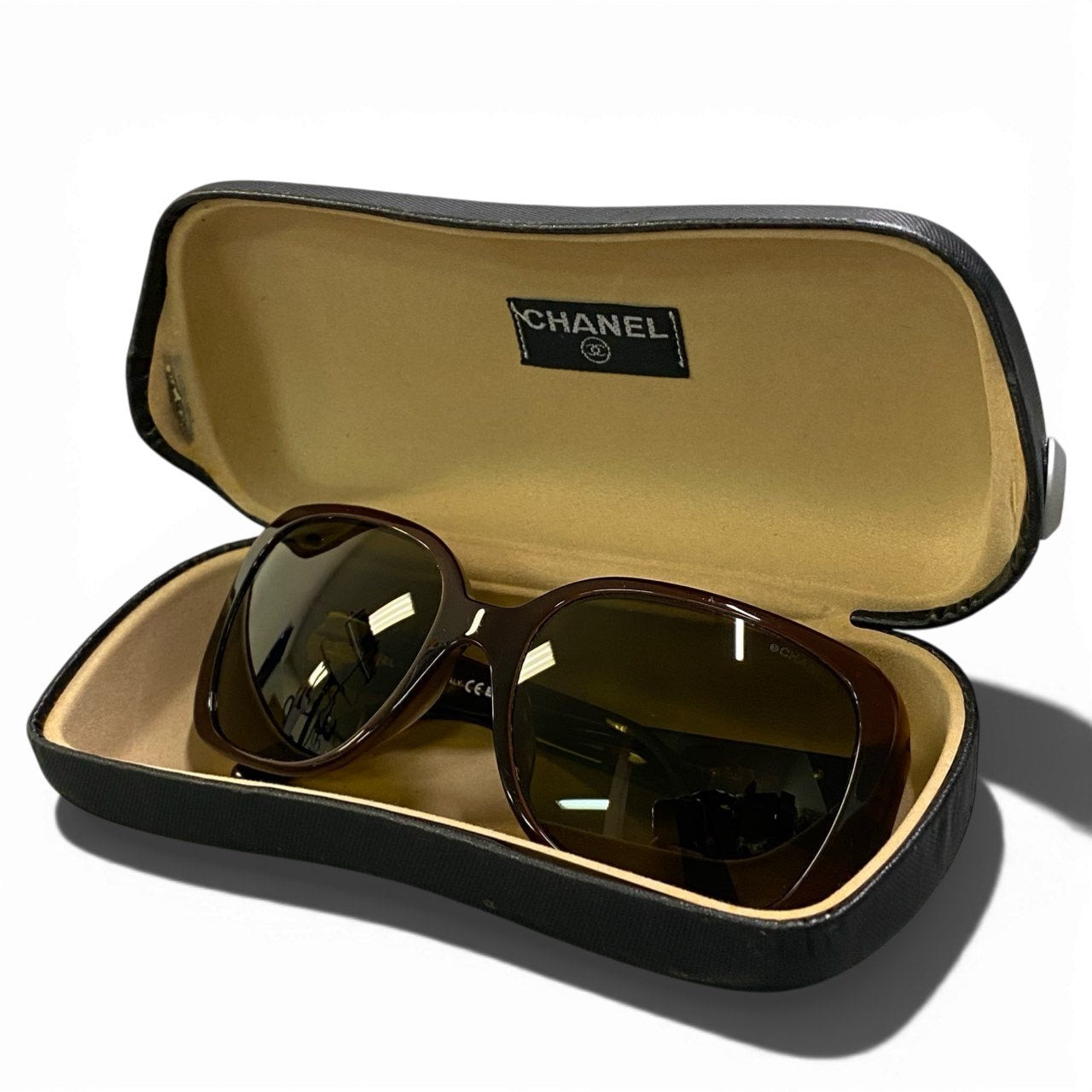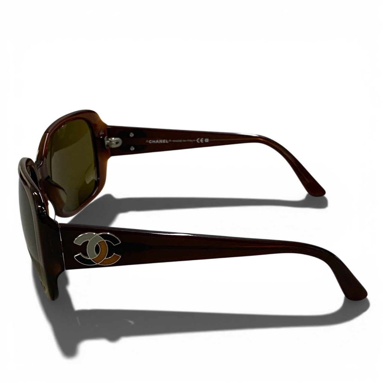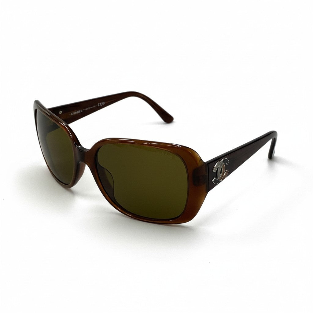 光沢のあるブラウンデミ(べっ甲調)アセテートフレームに、カーキブラウン系のスモークレンズを組み合わせたシャネルのサングラスです。サイドにはシルバーカラーの立体ココマークメタルロゴをあしらい、上品なアクセントをプラス。丸みのあるスクエアシルエットが柔らかな印象を与え、フェイスラインをすっきりと見せてくれます。デイリーコーデからリゾートスタイルまで幅広く活躍するエレガントな一本です。