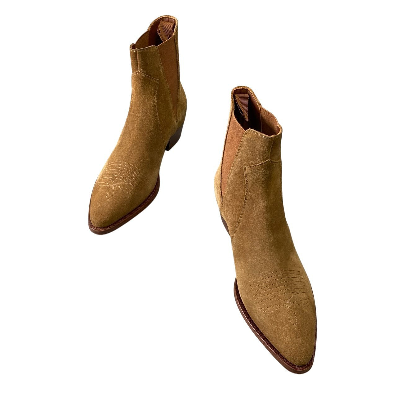 1L11【極美品】CELINE セリーヌ エディスリマン ウエスタンブーツ チェルシーブーツ ハバナ サイズ40 ベージュ スウェード メンズ 男性用 靴k02i