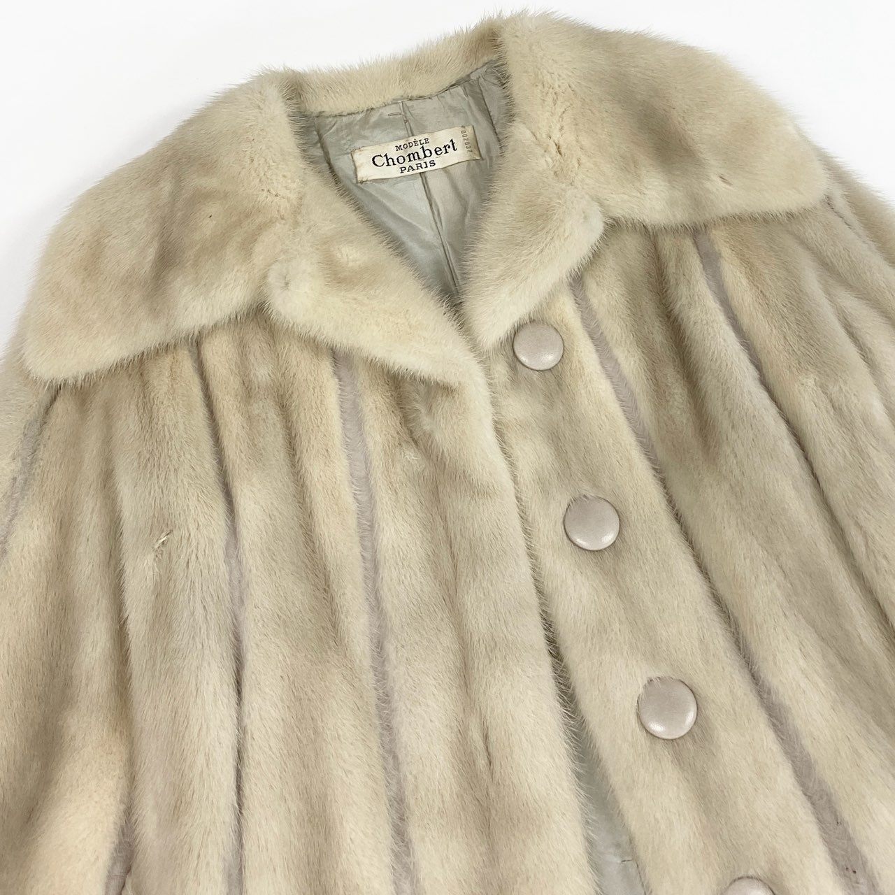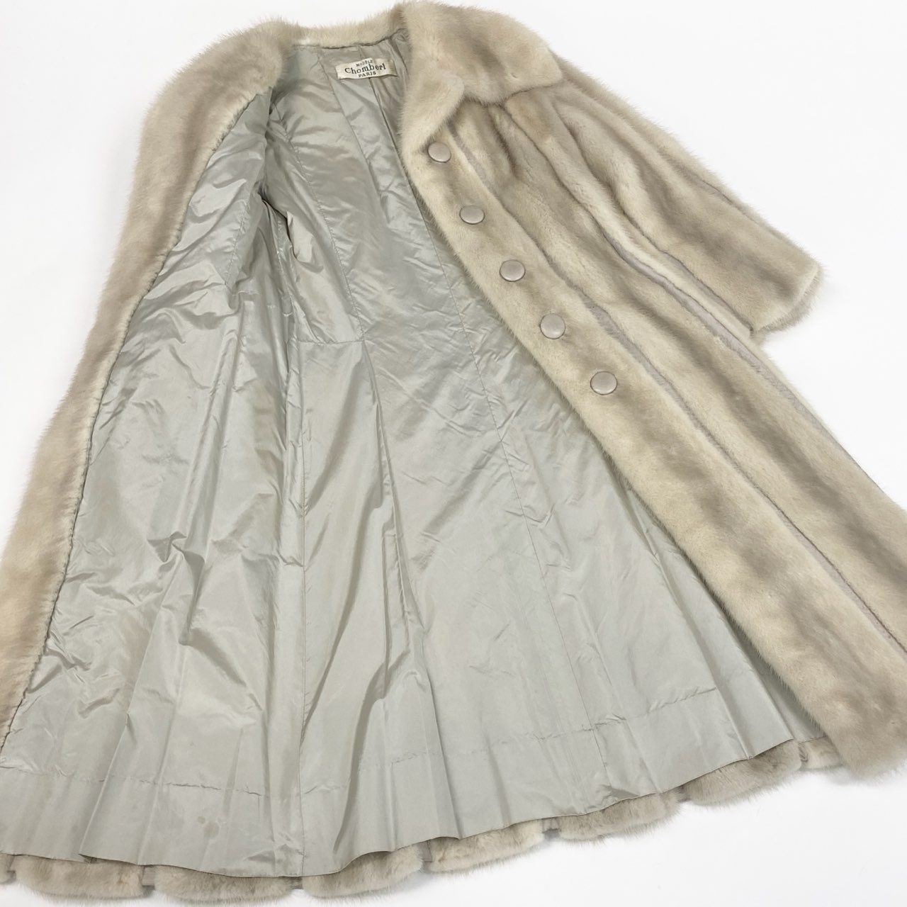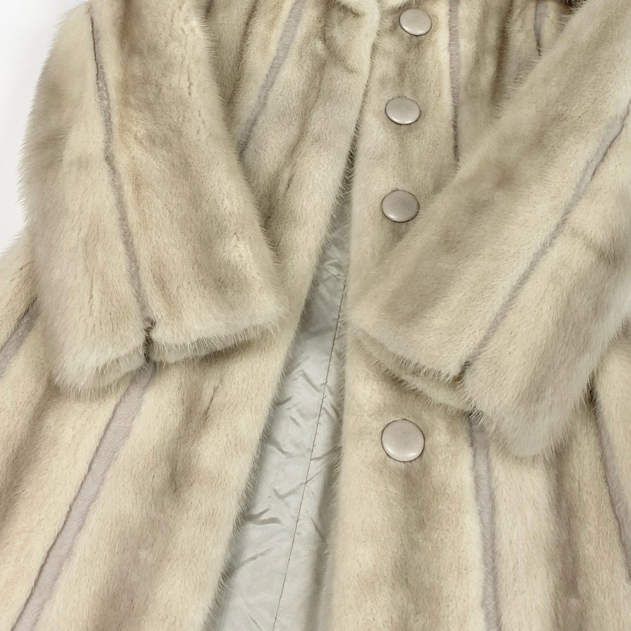 84a21 パールミンク ミンクコート 超ロングコート 着丈105cm レザーボタン レディース 女性用 FREE ホワイト系 ミンクファー 本毛皮u02t