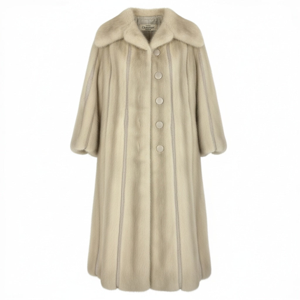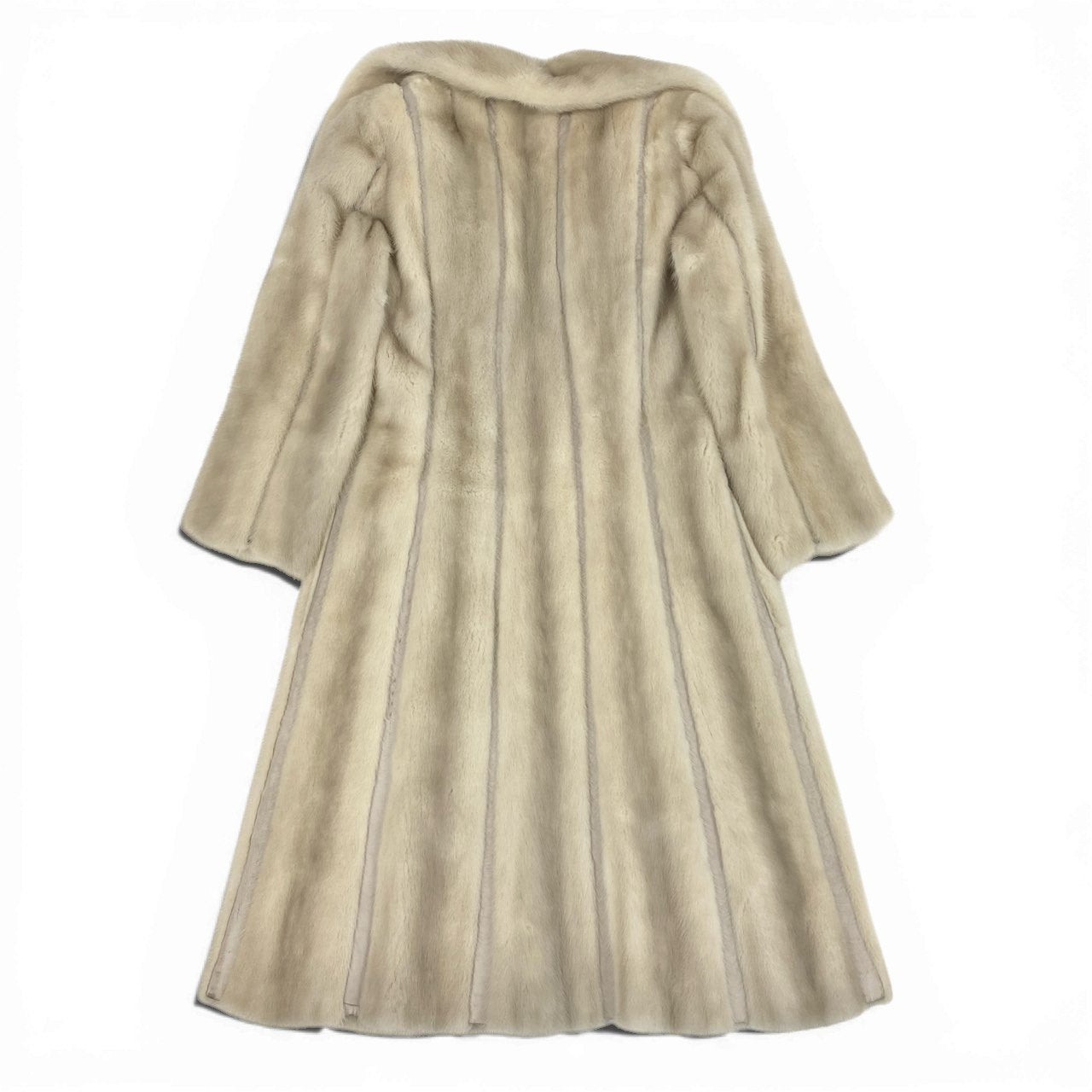 ホワイト系カラーが美しいパールミンクの毛皮コートです。 毛足はきめ細かく滑らかで、自然な艶感が高級感を演出しています。 縦ラインを強調するデザインとラウンドした襟元が、女性らしく優雅なシルエットを引き立てます。 パーティーや式典、特別なお出かけなど、装いを格上げしたいシーンにふさわしい一着です。