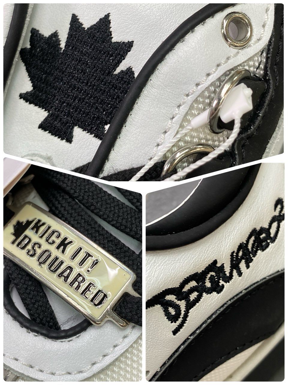 6b28 DSQUARED2 ディースクエアード 《タグ付き》 ローカットスニーカー レザースニーカー 牛革 カウレザー イタリア製 メンズ 保存袋付属 43 ホワイト ブラック グレー 本革