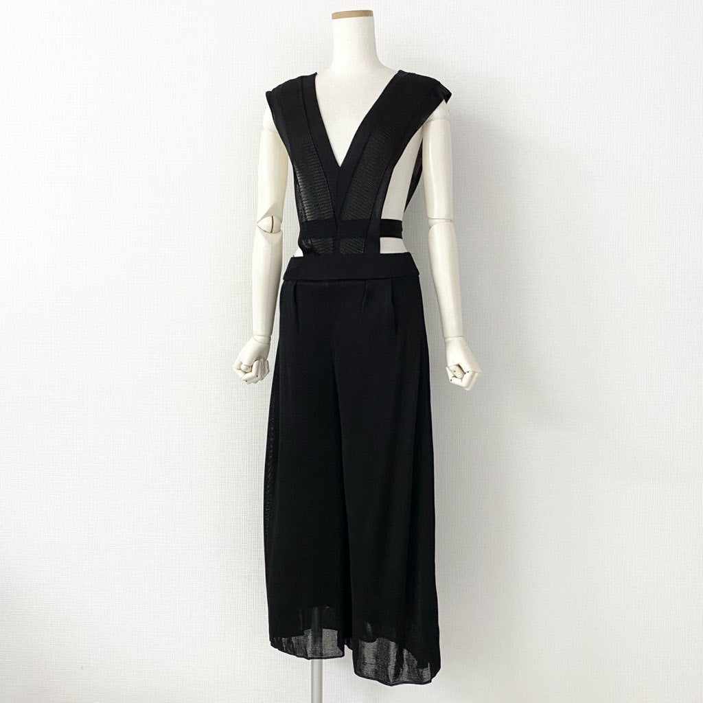 64e5 日本製 TAN タン Vサロペットニットパンツ TN19SS029 ブラック レーヨン レディース 春夏