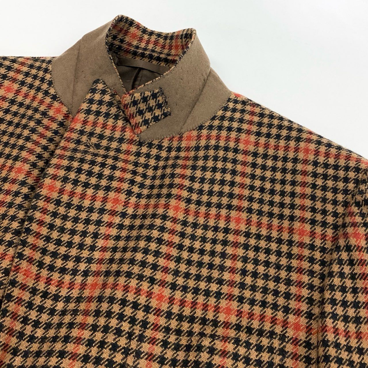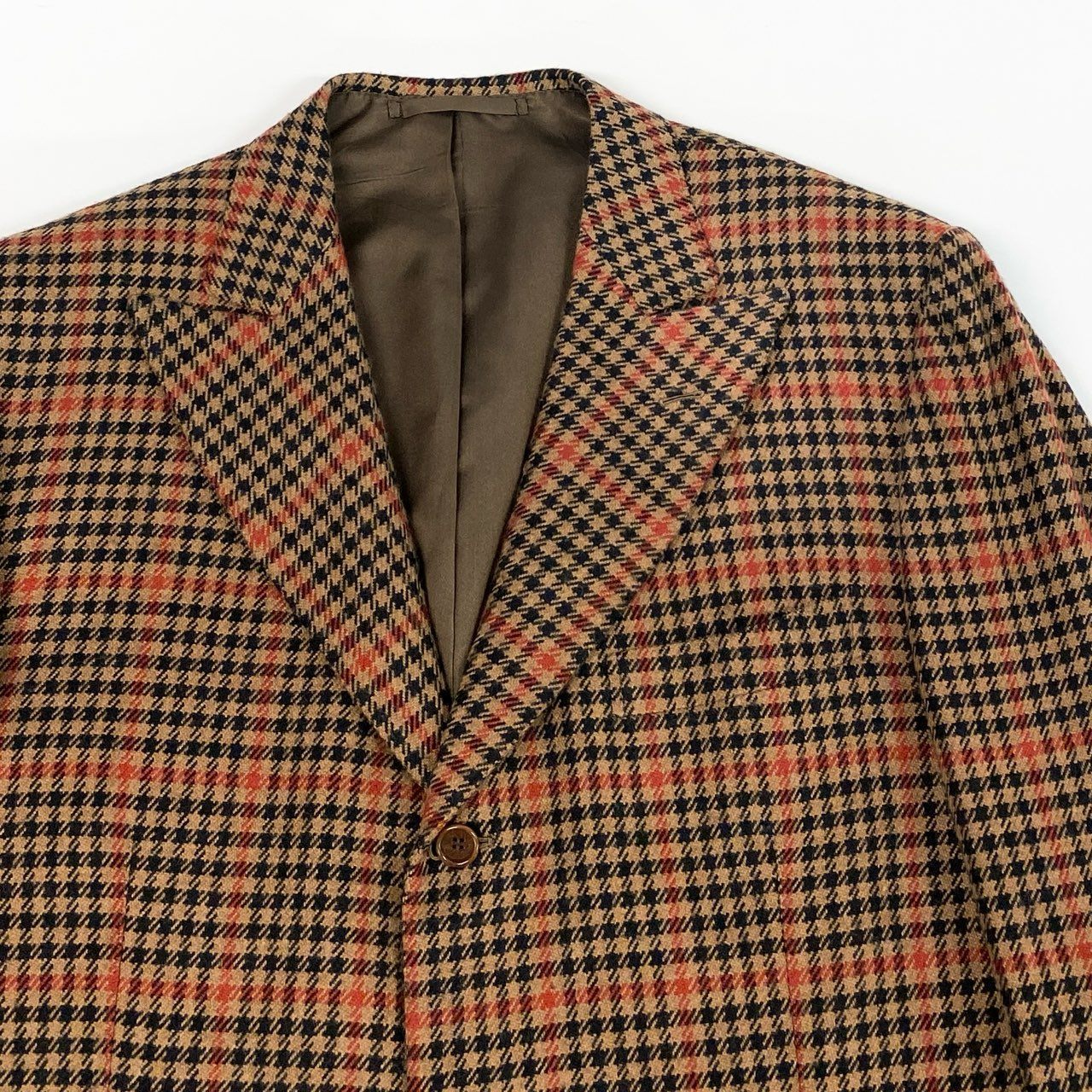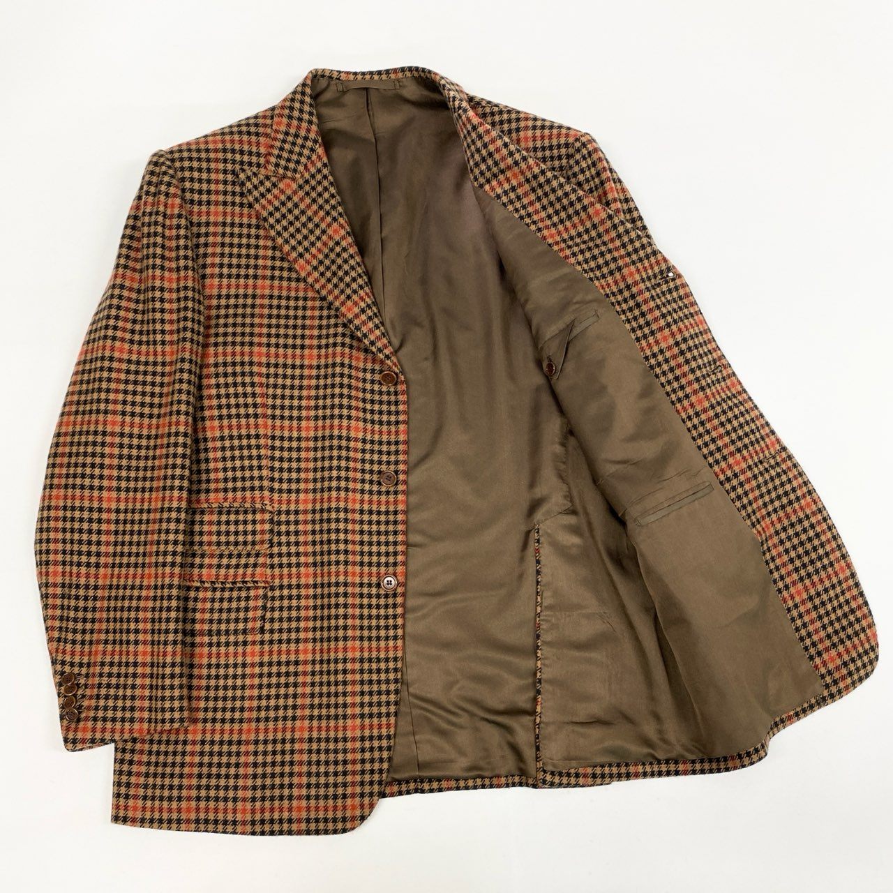 落ち着いたブラウン×オレンジ系の英国チェック柄が印象的な、Tindaro de Ruca「サルトリア ミラネーゼ」テーラードジャケットです。ウールらしいマットで上質な質感に、2005年ビスポークらしい重厚な構築美が映える一着。ロング丈のしっかりしたシルエットで、クラシックな英国調コーデや大人のカントリージャケットとして活躍します。XXLのゆったりサイズで、肩周りや胸囲に余裕が欲しい方にも安心。ビジネス、ジャケパン、トラッドスタイルなど幅広いシーンで着用いただけます。