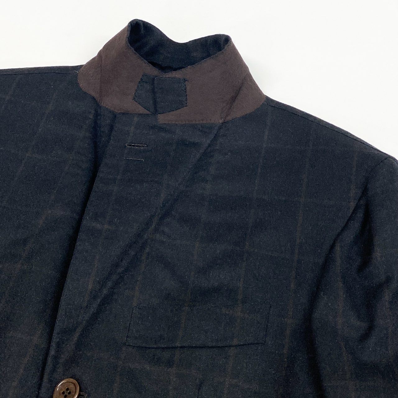 ルイジ・ボレッリらしい端正な仕立てが際立つシングルスーツで、ブラックにダークブラウンを含んだチェック柄が上品な印象です。素材はマットな質感のウールで、落ち着いた光沢感と柔らかさがあり、通年で着用しやすい一着。2ボタン仕様とクラシックなラペルが、ビジネスシーンから少し改まった会食まで幅広く対応します。イタリアブランドならではの洗練された雰囲気を楽しめるスーツです。