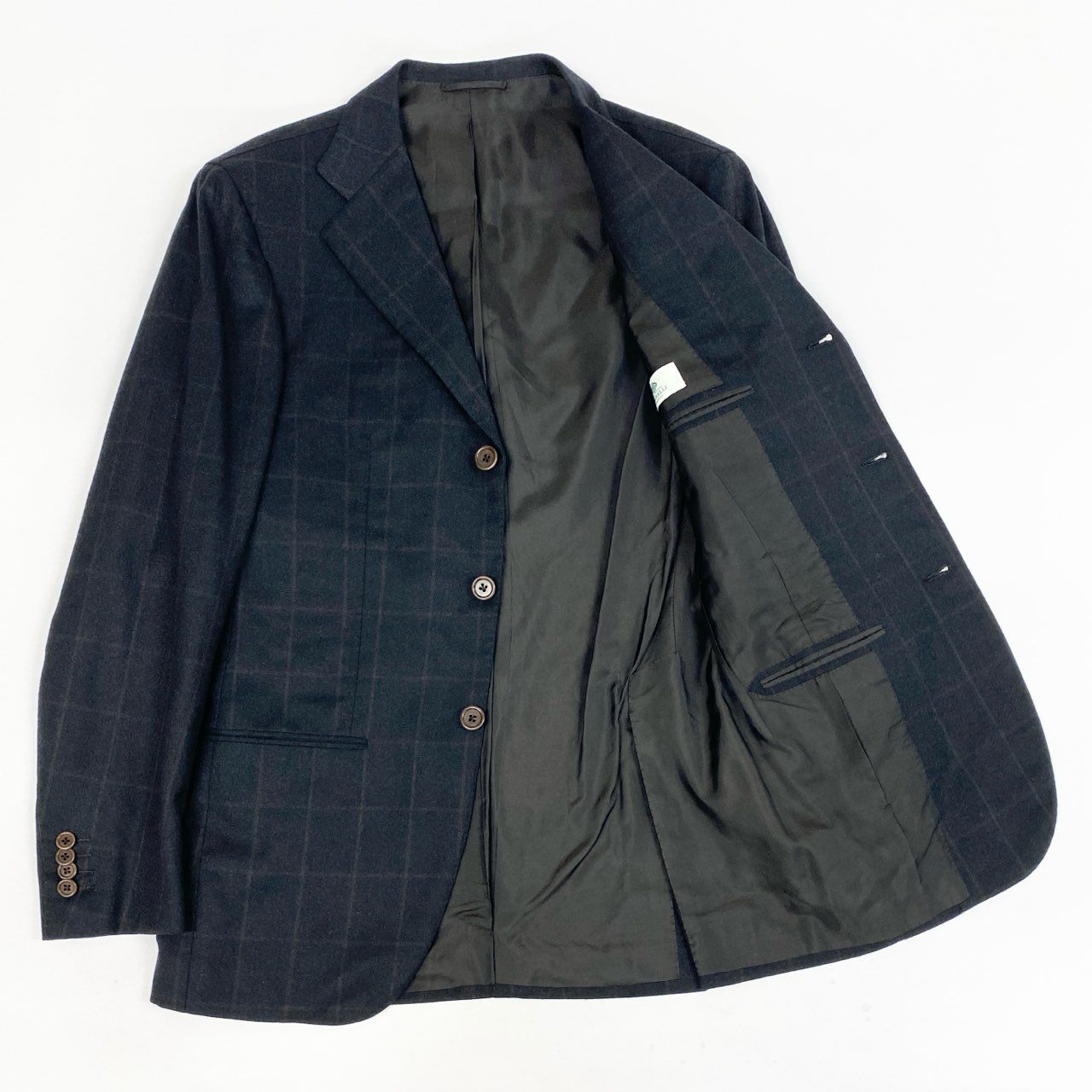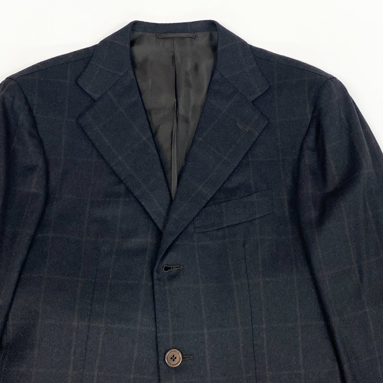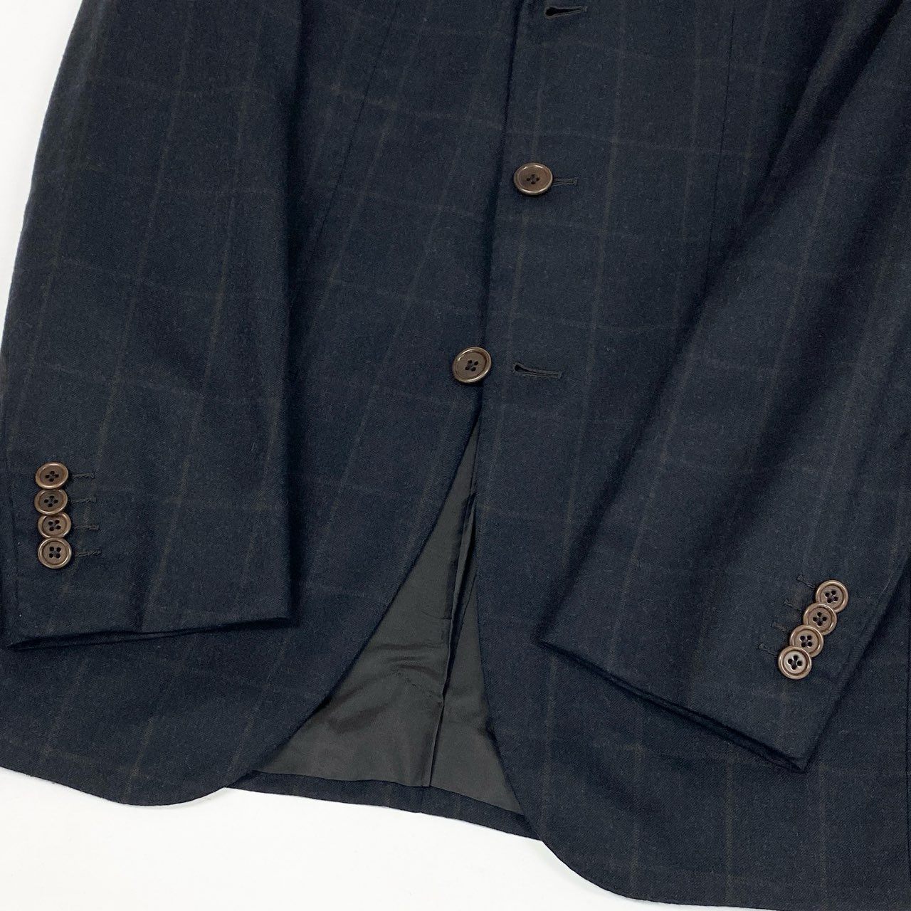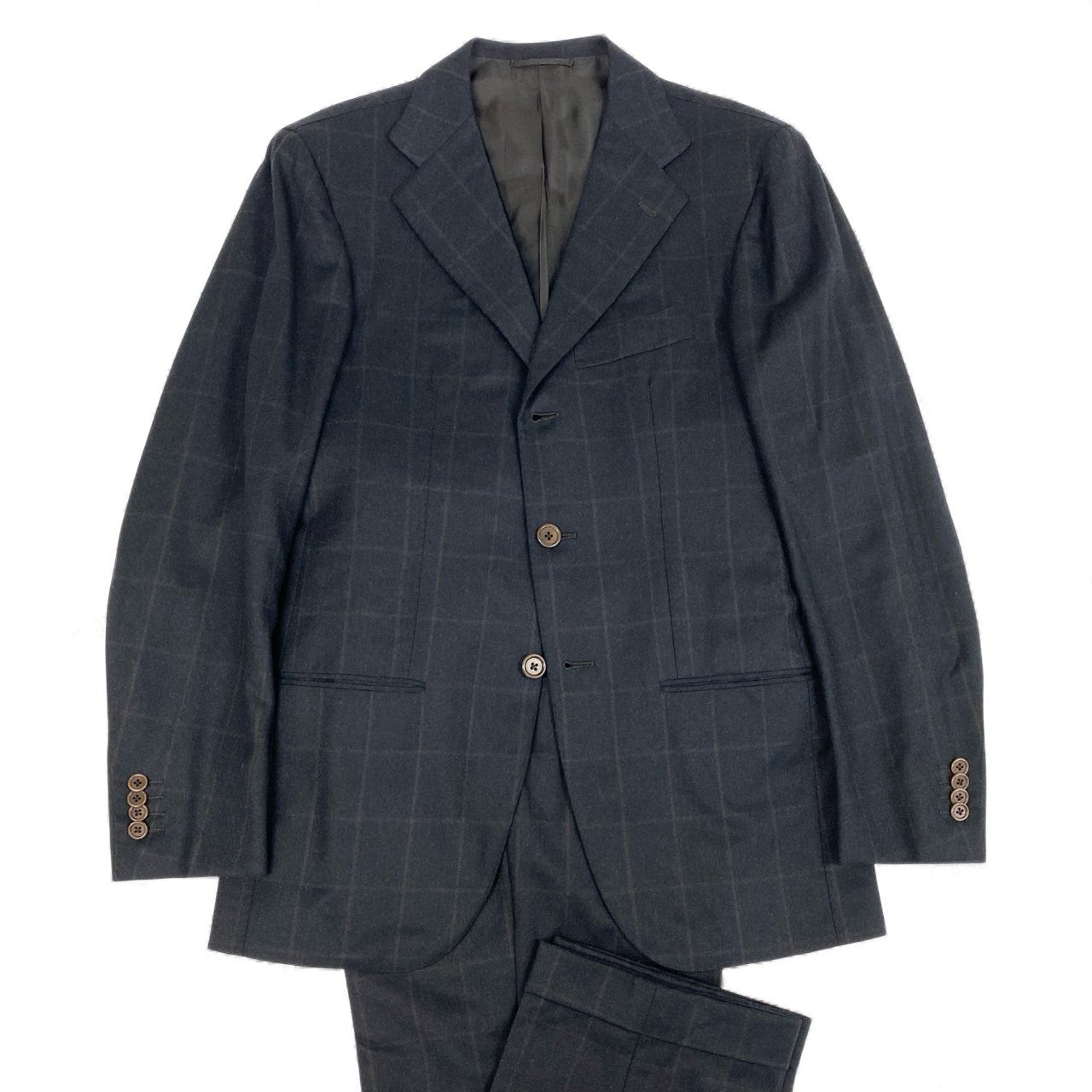 9L19 LUIGI BORRELLI ルイジボレッリ イタリア製 チェック柄 セットアップ スーツ フォーマル◎ 44 ブラック ダークブラウン ウール メンズo07t