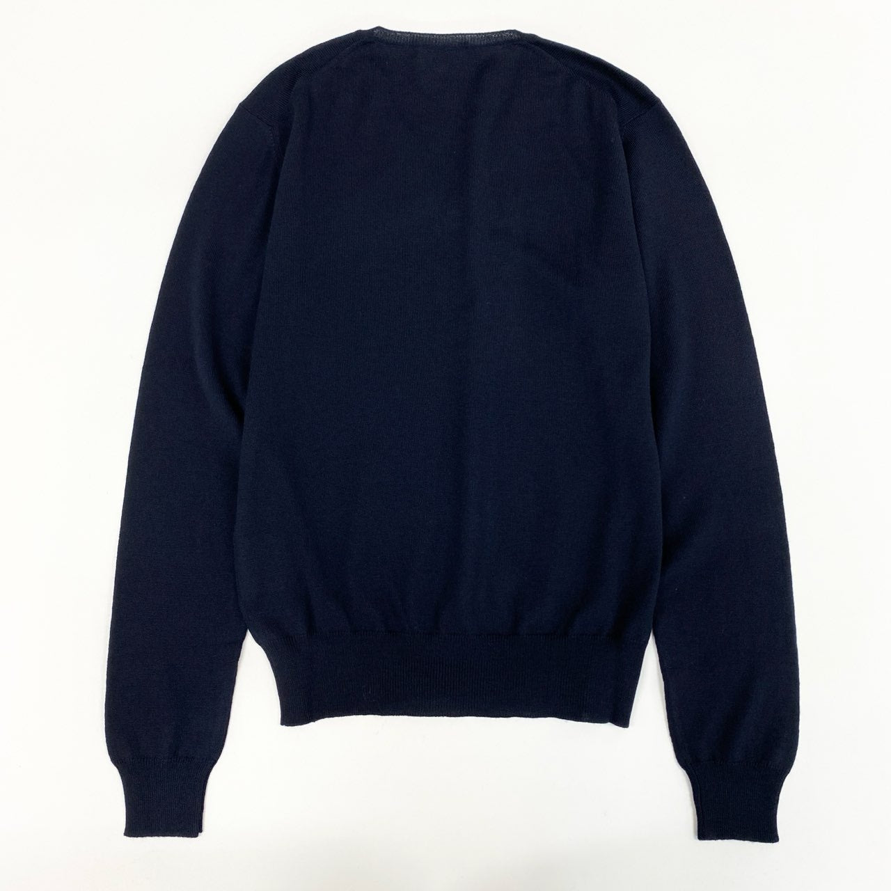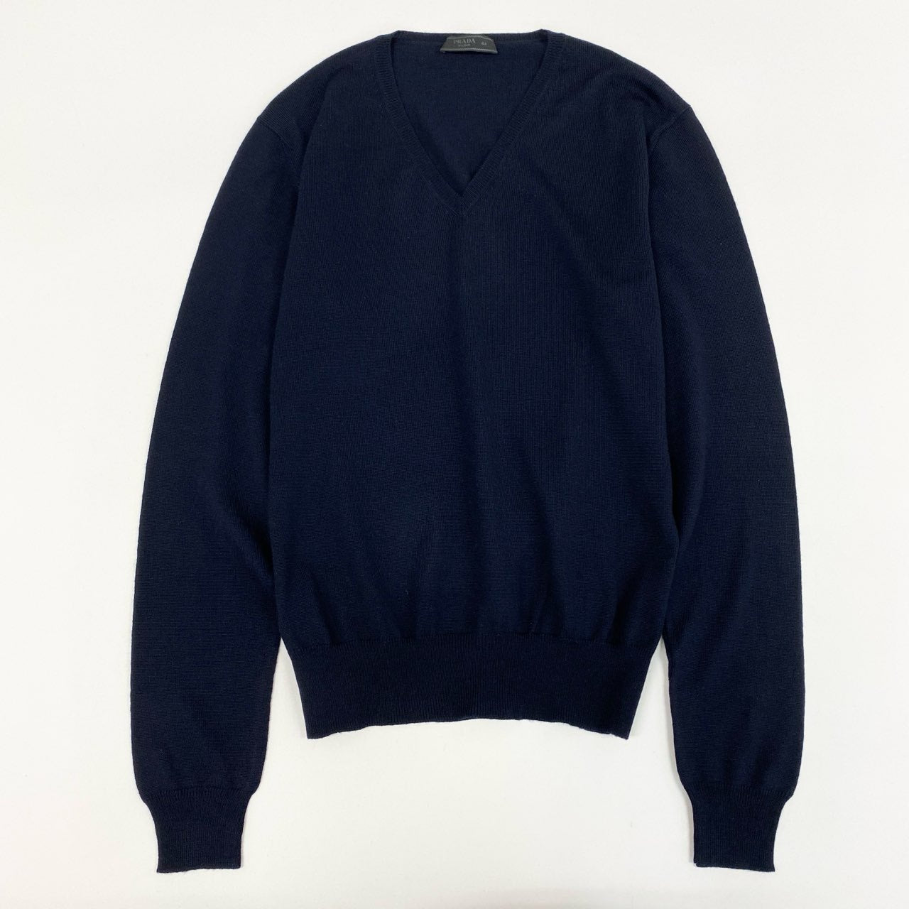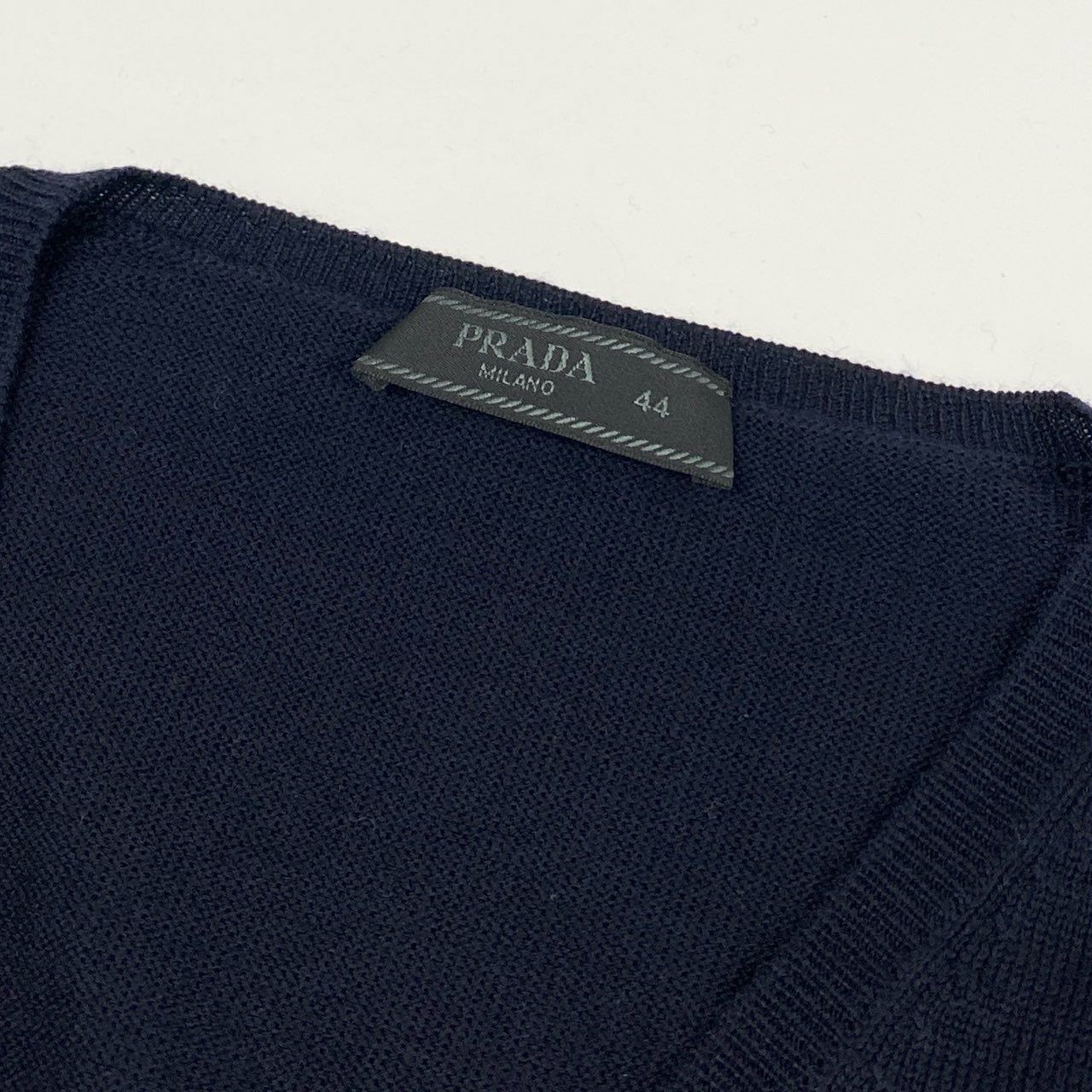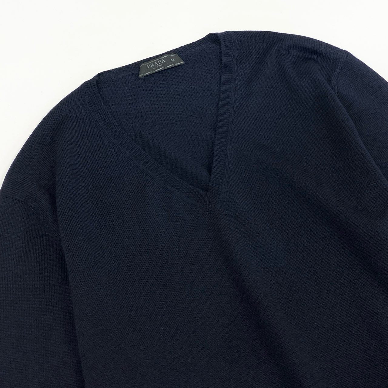 34k28⑪ 《極美品》 PRADA プラダ Vネック ニットセーター ウールニット ヴァージンウール ロングスリーブ 長袖 イタリア製 DNA386 507 44 ネイビー ウール100